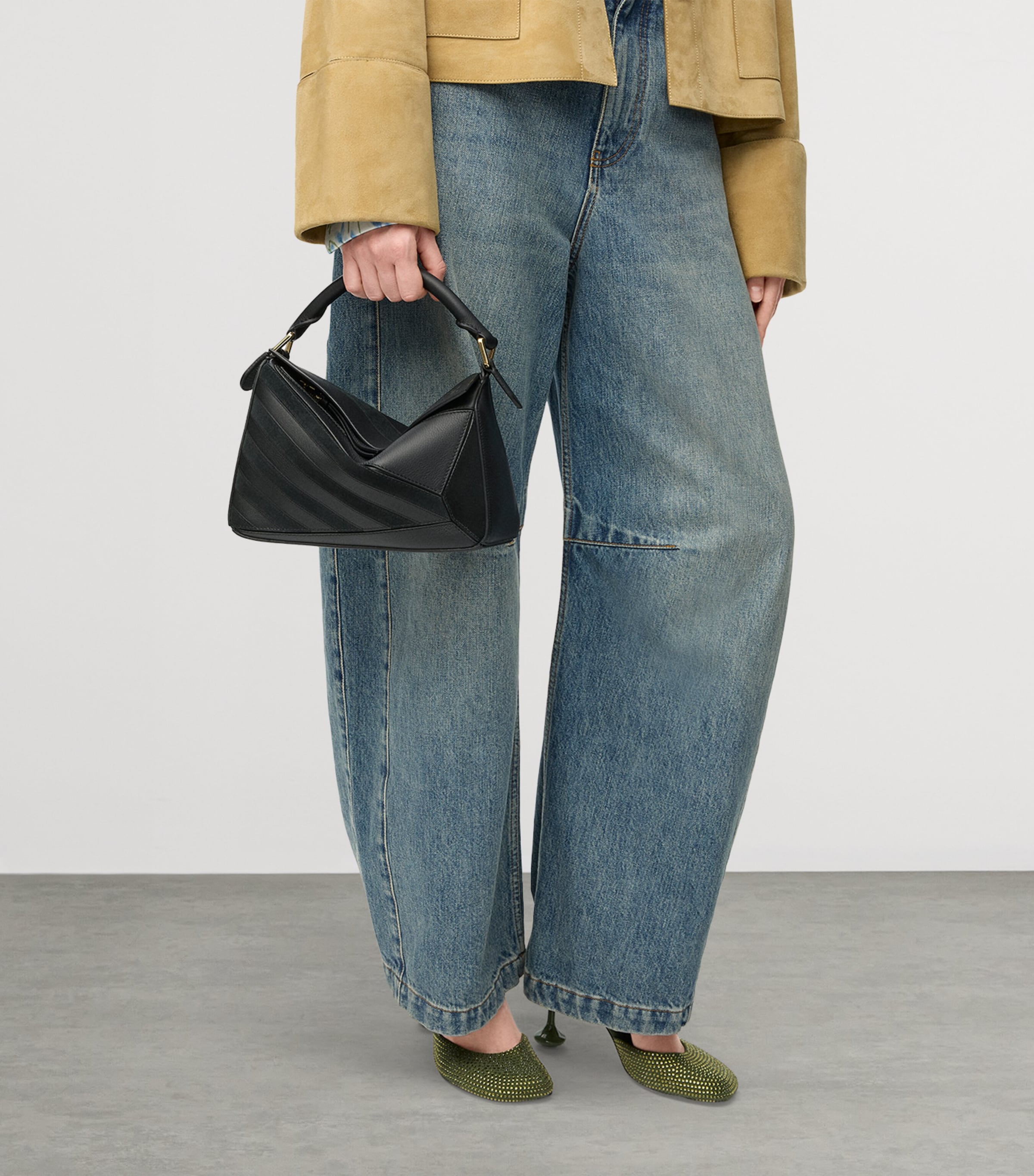 Designed in 2014, the Puzzle bag from LOEWE exudes modern artistry with its innovative cuboid shape – one that takes 524 actions to complete and perfect. The calfskin Puzzle Edge emphasises this origami-like construction with overlapping panels, paving the way for it to be conveniently folded completely flat.