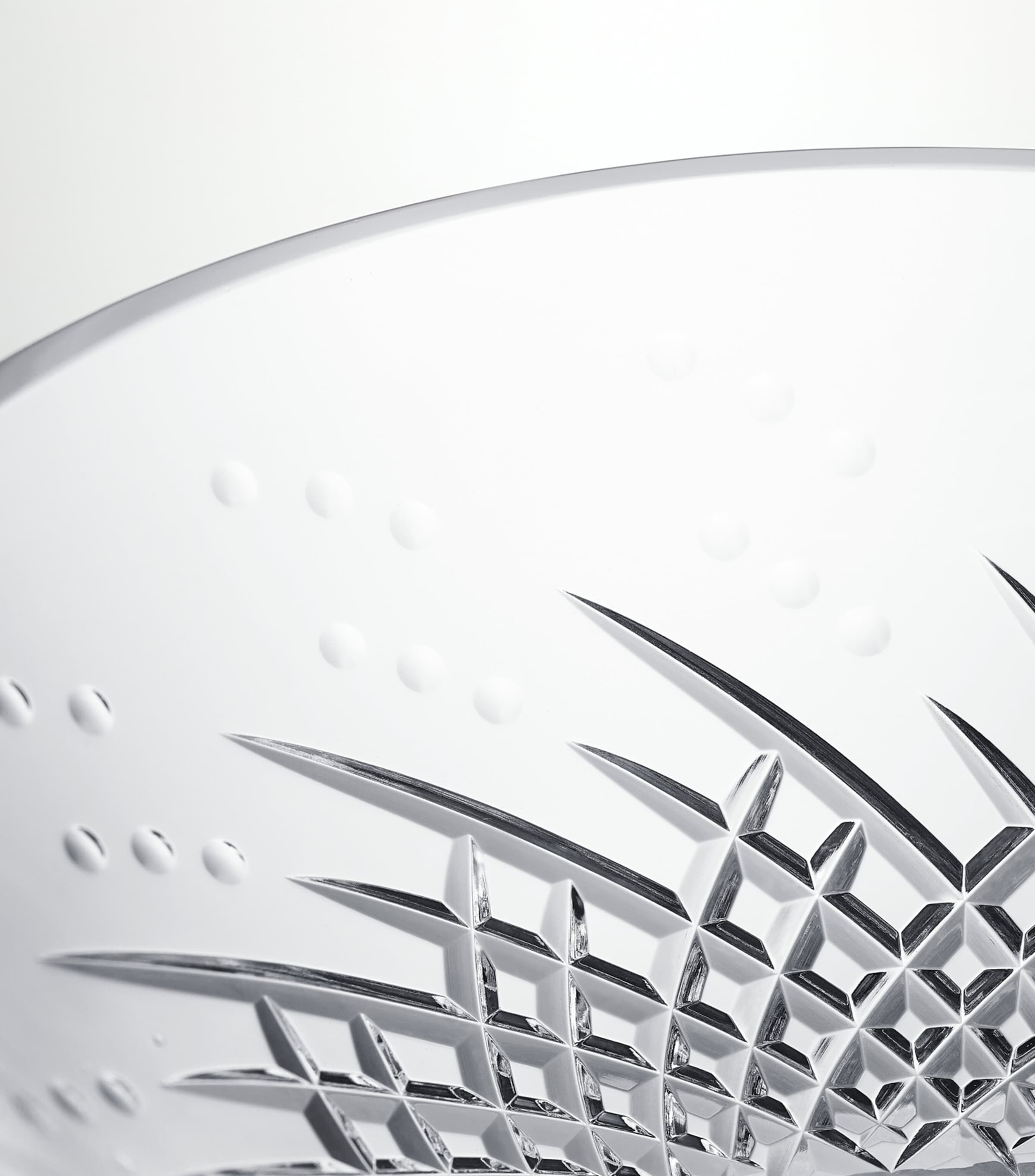 The Waterford Celebrations bowl features expertly cut crystal in signature karo and olive patterns – the former creates a sparkling geometric lattice while the latter adds soft, elongated facets that catch and refract light beautifully. A versatile piece, it brings a dynamic interplay of texture and shine, perfect for elevating dining, entertaining, or as a striking decorative accent.