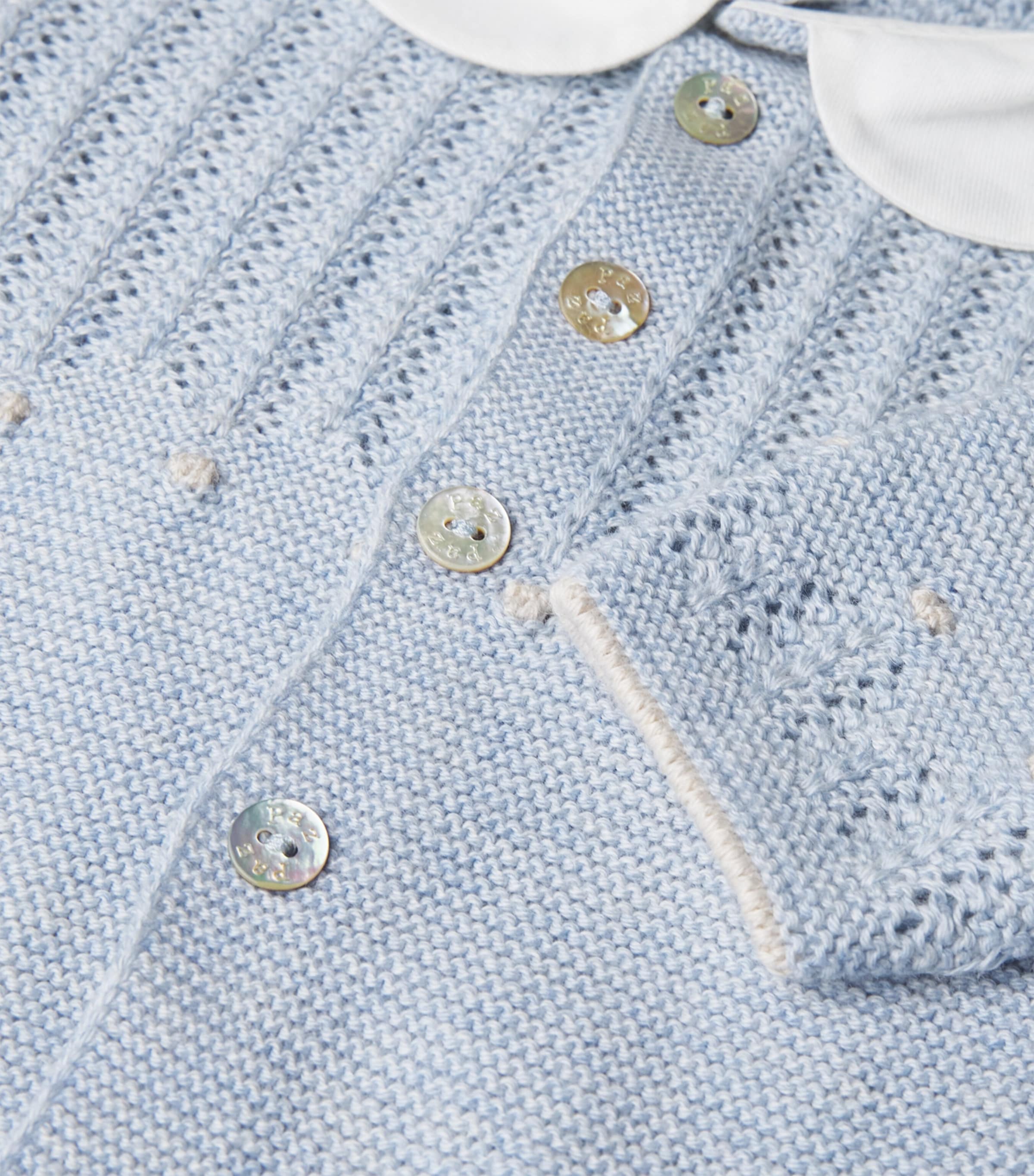 Since 1970, Paz Rodriguez has infused its love for natural materials and attentive craftsmanship into its expertly made pieces. This all-in-one is a testament to that dedication; its wool construction is delicately knitted with fine textural elements and completed by a Peter Pan collar in a call to classic childrenswear.