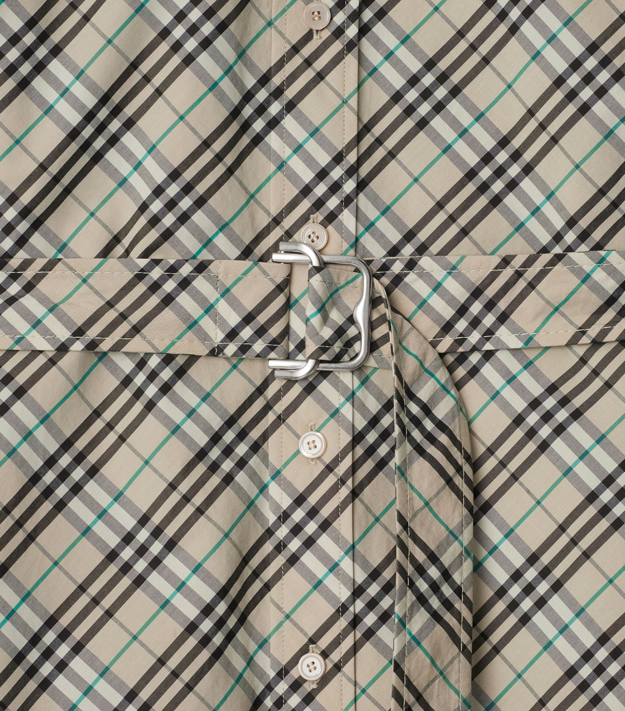 Burberry beigefarbenes Mini-Hemdkleid aus karierter Baumwolle