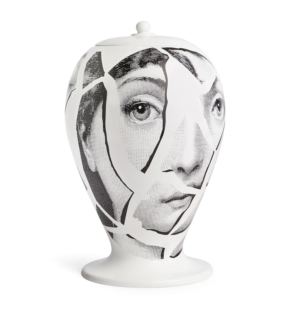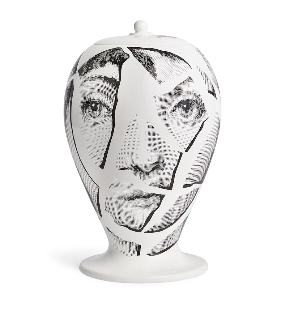 A true Fornasetti enthusiast will immediately recognise the face of opera singer Lina Cavalieri. Offering a visual representation of the name, her face adorns the beautiful porcelain exterior in broken pieces encircling the silhouette. Transformed from a simple vase to an eye-catching piece of art, use it to house fresh florals or simply as a decorative piece on its own.