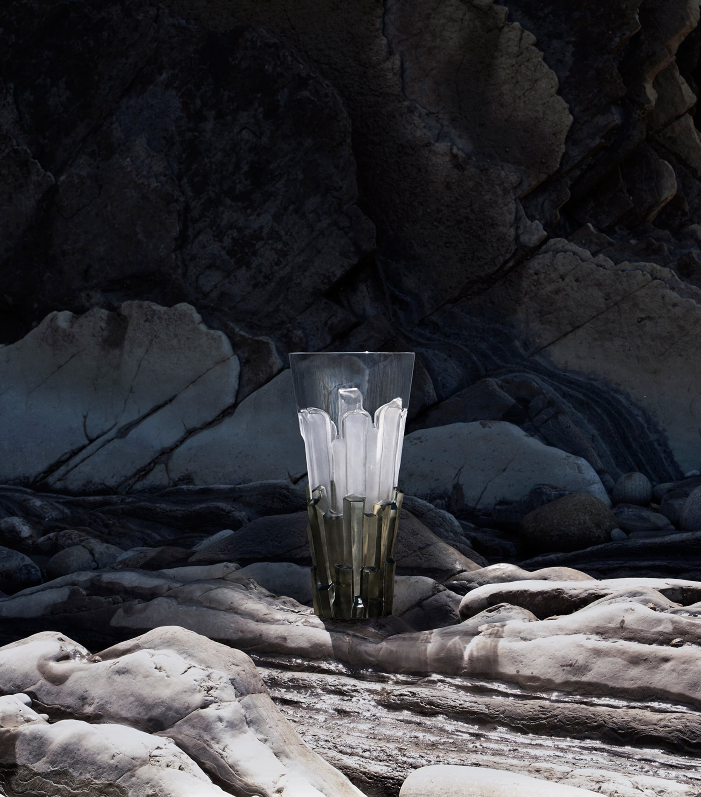 Lalique’s Terramineral Chapter 2 collection is a tribute to the very essence of the Earth, with landscapes formed over centuries recreated in sculptural pieces that present this French label’s crystal-making savoir-fair to its fullest extent. Created in a limited edition run of only 45 pieces, the Basalte vase is a geometric masterpiece reflecting the architectural beauty of natural rock formations created by crystalised magma, with the striking mix of crystal colourways achieved through technical ingenuity: a double injection process combines clear and grey crystal to create a mineral marvel.