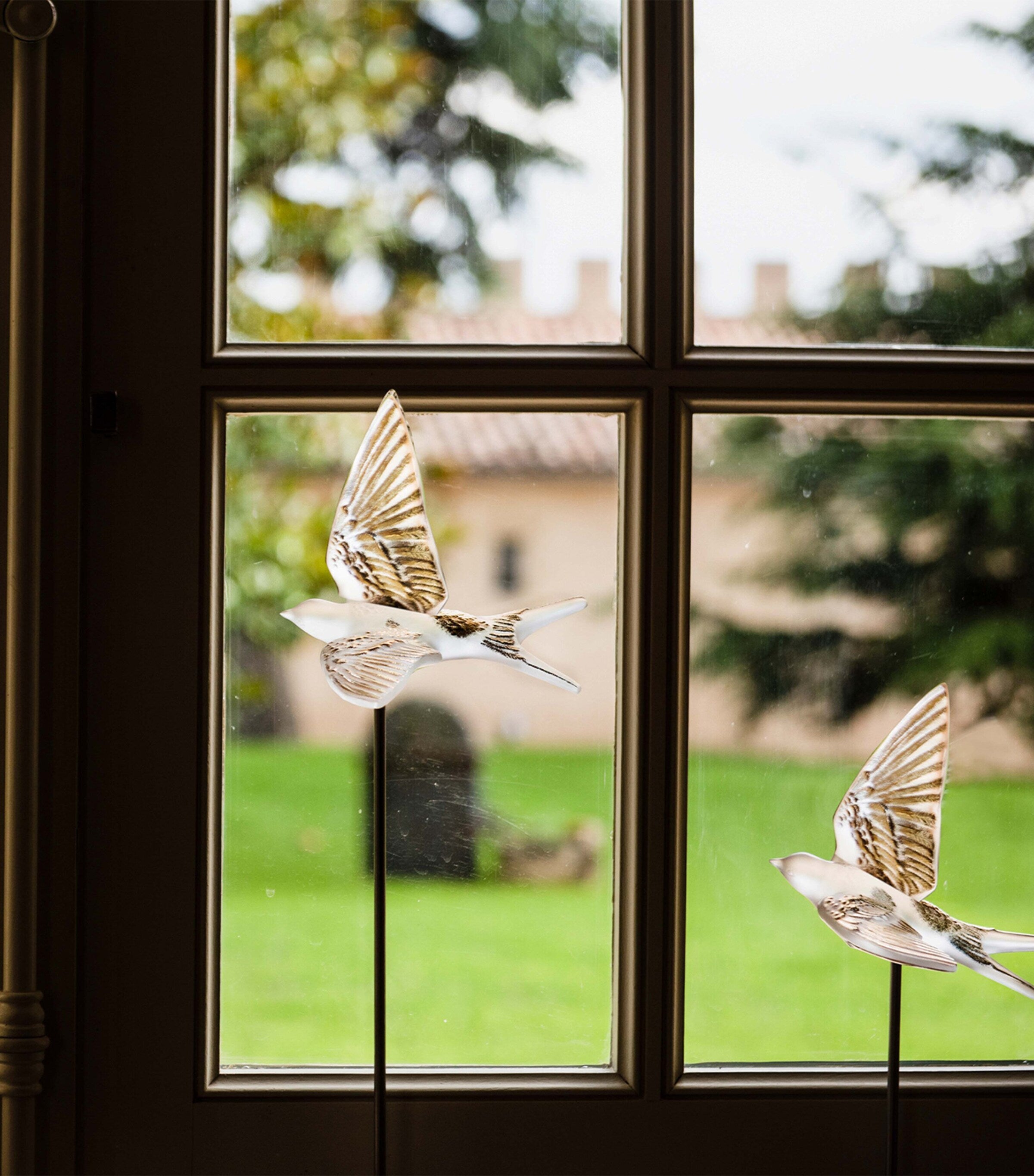 Celebrating Lalique's 130th anniversary, the Hirondelles collection pays homage the Maison's rich glassmaking heritage and its founder's love of the natural world. Handcrafted in France from gold-stamped crystal, this sculpture depicts a graceful swallow – emblematic of freedom and happiness, and one of René Lalique's greatest sources of inspiration – and clings to the wall by a magnet to mimc a bird in flight.