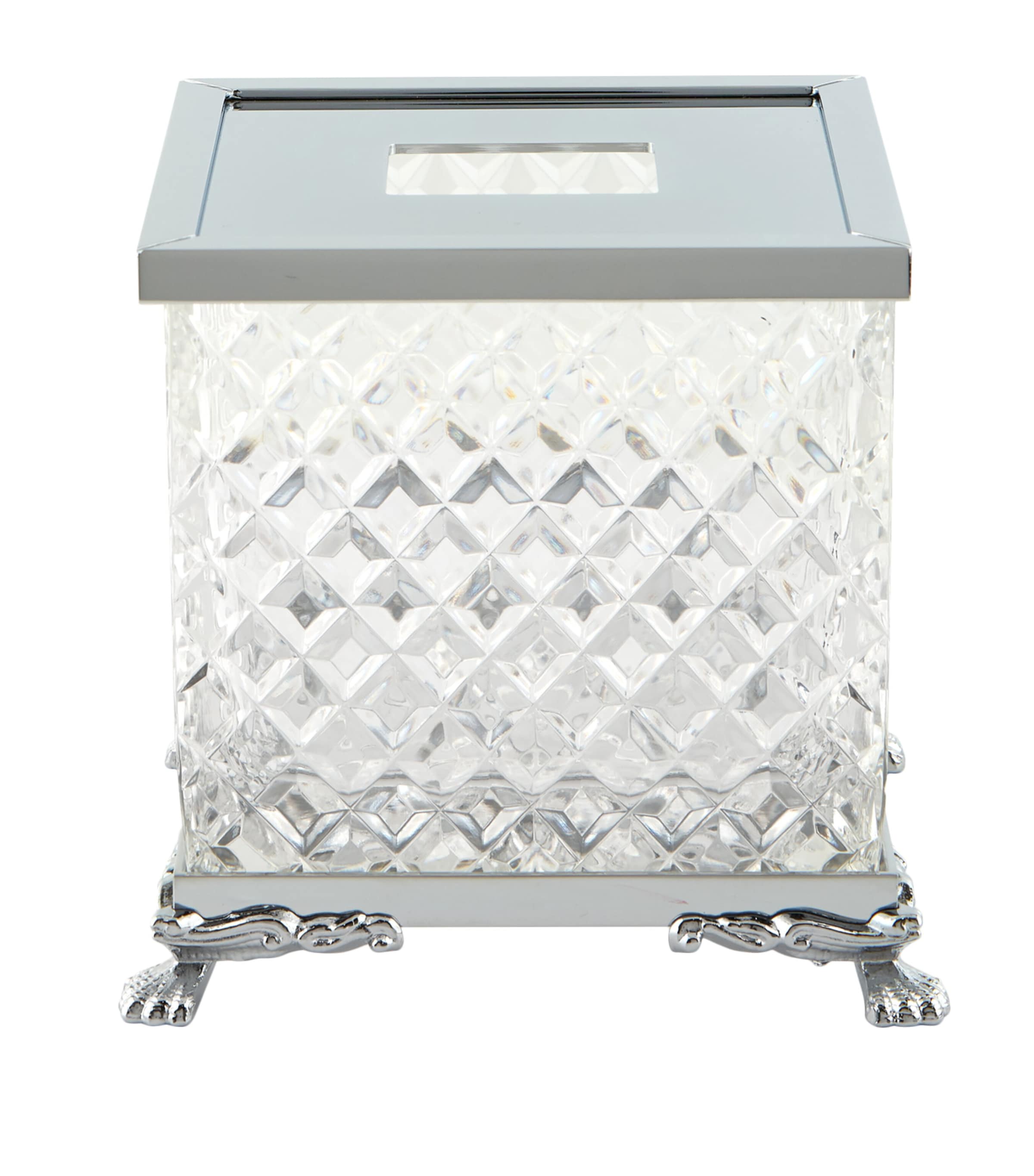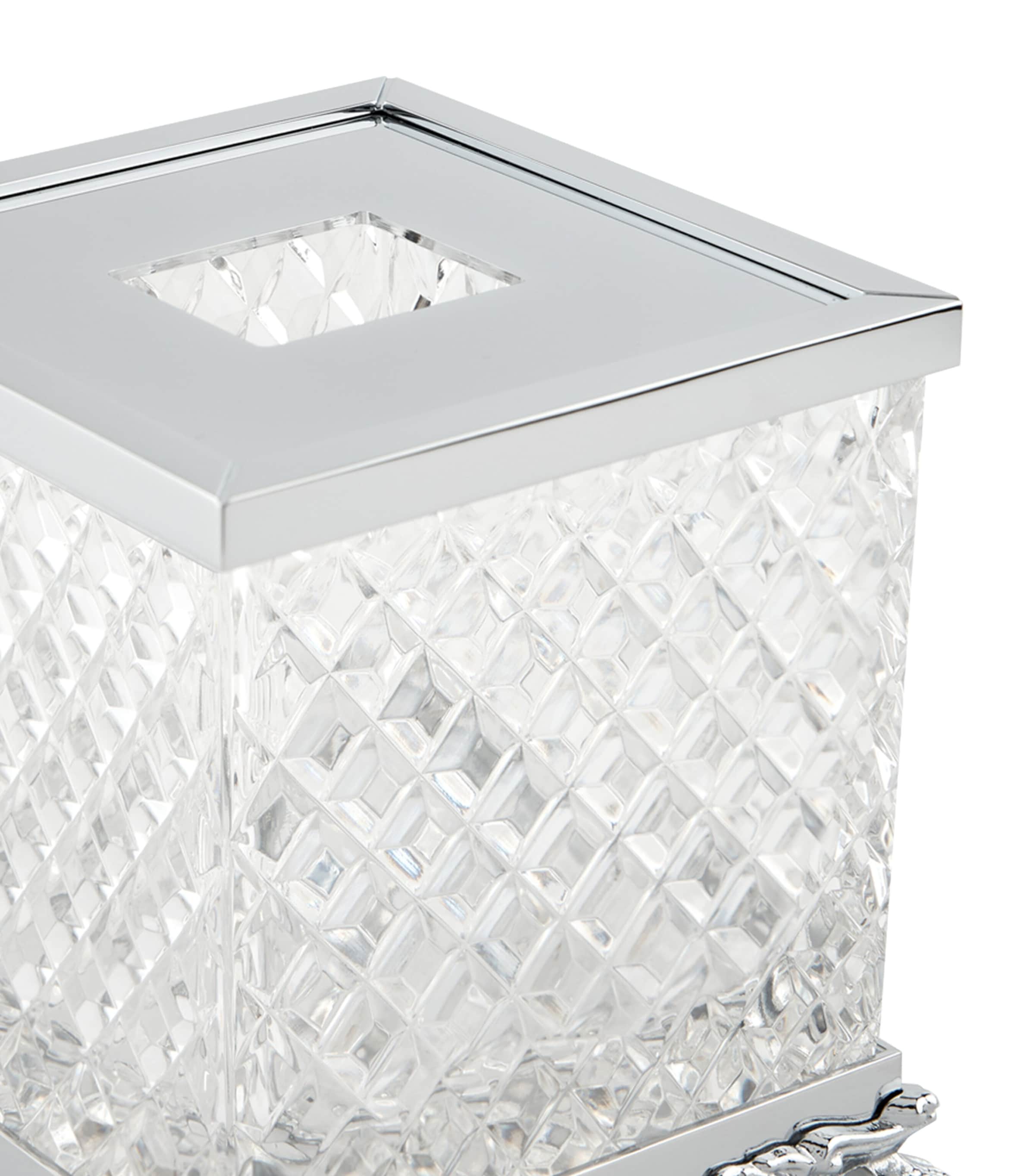 Hand-crafted by Italian artisans to a wondrous effect, this tissue box from Zodiac introduces a decadent touch to your home decor. Crafted in bevelled crystal and framed with a sleek chrome-plated lid, detailed lion's feet stand proud at every corner for a piece that is as practical as it is opulent.