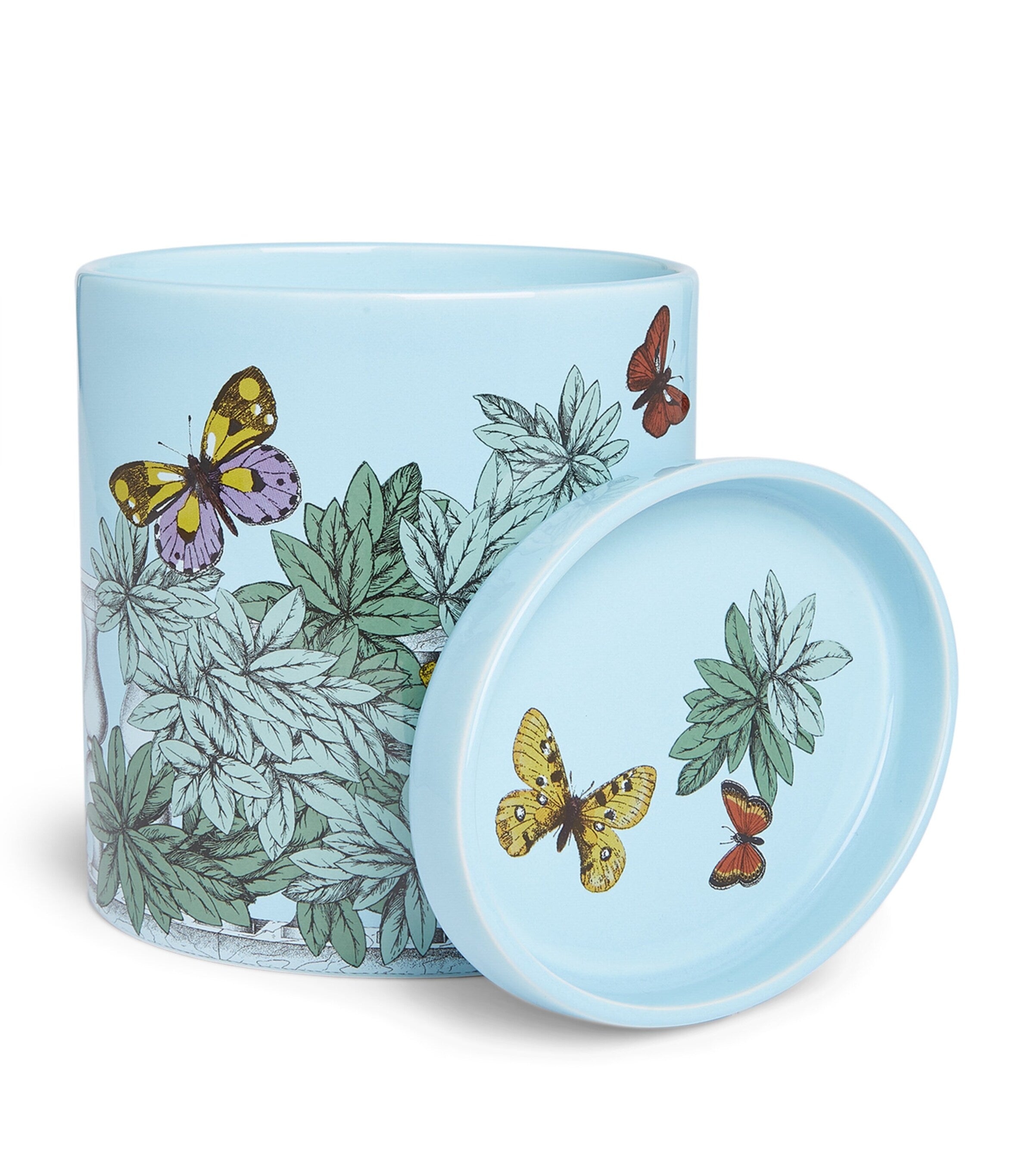 Offering a visual representation of what its name suggests, each of these three Farfalle e Balaustra scented candles by Fornasetti is encased within an incredibly colourful and detailed ceramic jar painted with plants and butterflies. The Giardino Segreto fragranced wax filling the trio blends the green aromas of undergrowth with dry notes of flora-covered stone walls for a distinctive and eccentric perfume. Embodying the Italian artist’s penchant for unique creations, the set makes a charming addition to your home.