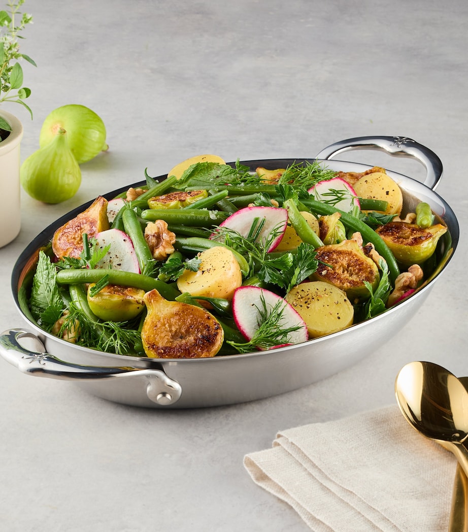 The shallow form of an au gratin allows for even cooking, a feature accentuated by the even heat distribution of Hestan's stainless steel.