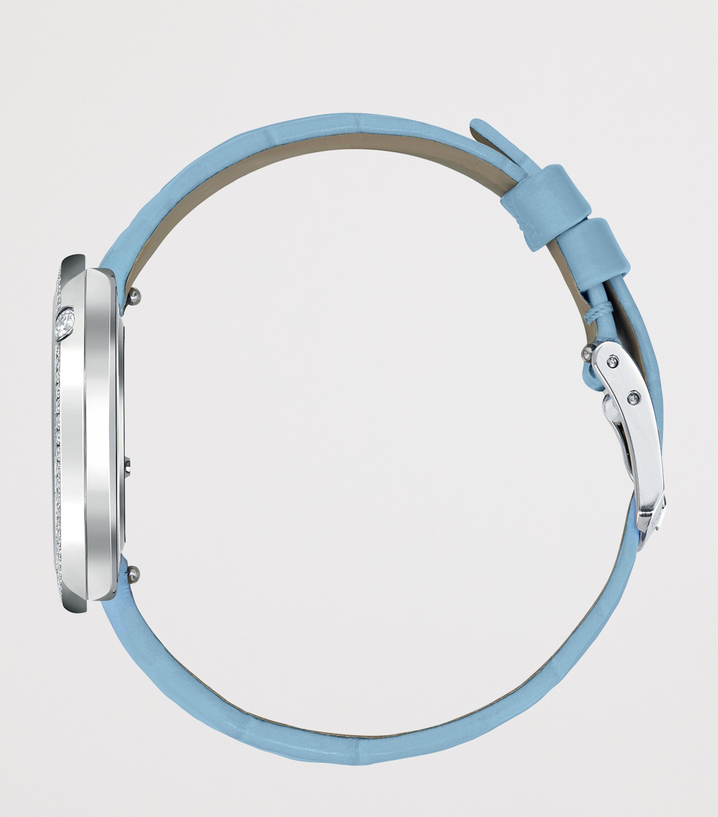 Renowned for blurring the line between fine jewellery and timepieces, Piaget dedicates its time to creating high-precision watches, much like this one. Part of the Maison’s Possession collection, the 34mm model features an incredible 79 white brilliant-cut diamonds and is secured by an alligator-leather strap.