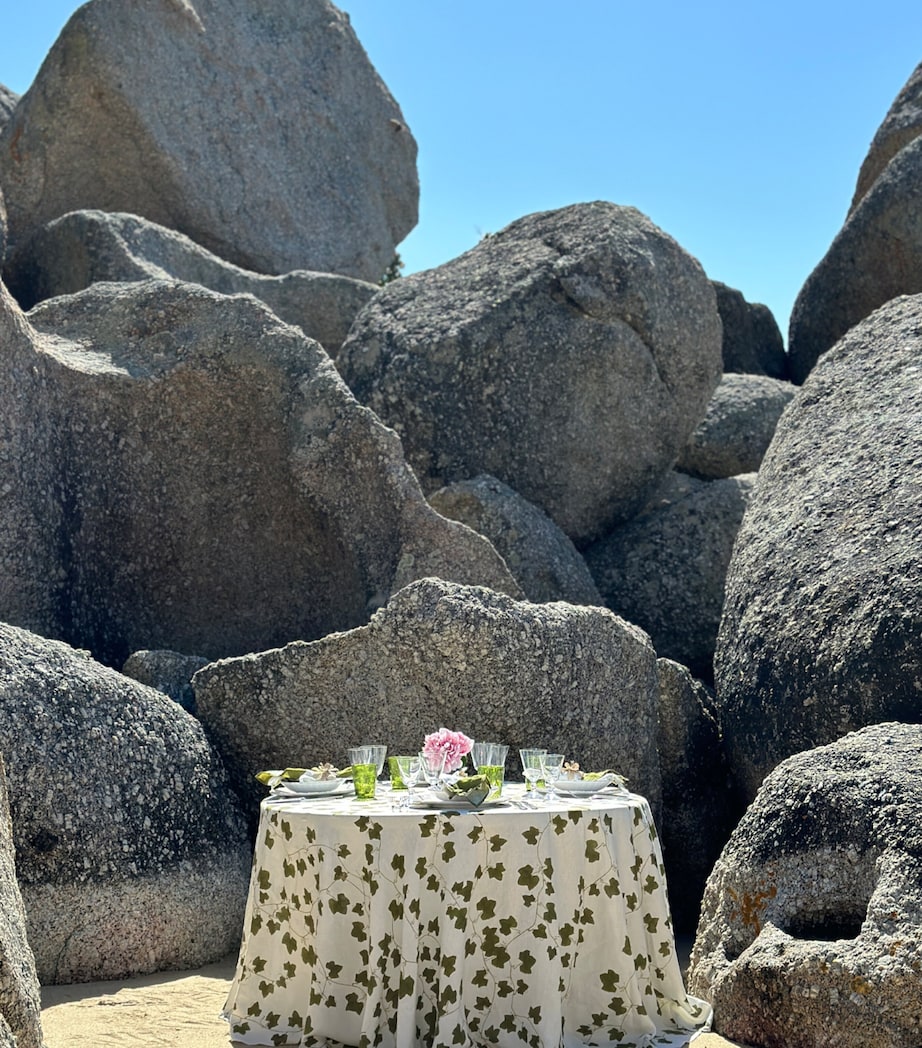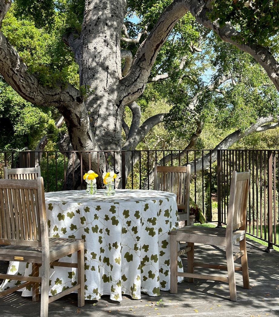 Setting the perfect scene, ivy is a symbol of love, friendship and remembrance. Offering a charming backdrop for your tablescaping – both indoor and out – Summerill & Bishop’s Ivy’s print is a homage to the quiet elegance of nature. Here, delicate leaves and tendrils entwine across the pure French linen of this round tablecloth, setting a tranquil scene.