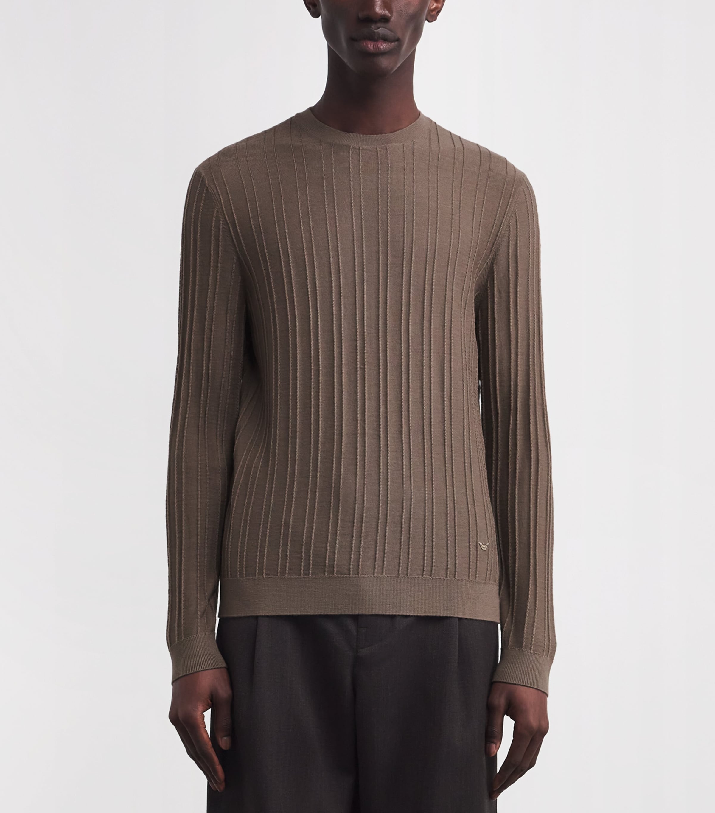Pure virgin wool takes on texture and depth with this sweater. Throughout Emporio Armani's history, it has used its garments to spotlight rich textural finishes, bringing a sense of depth to its relaxed silhouettes. This sweater is a prime example – knitted from a pure virgin wool that's perfect for layering below its jackets and blazers, it features multiple vertical jacquard stripes for a touch of structure.