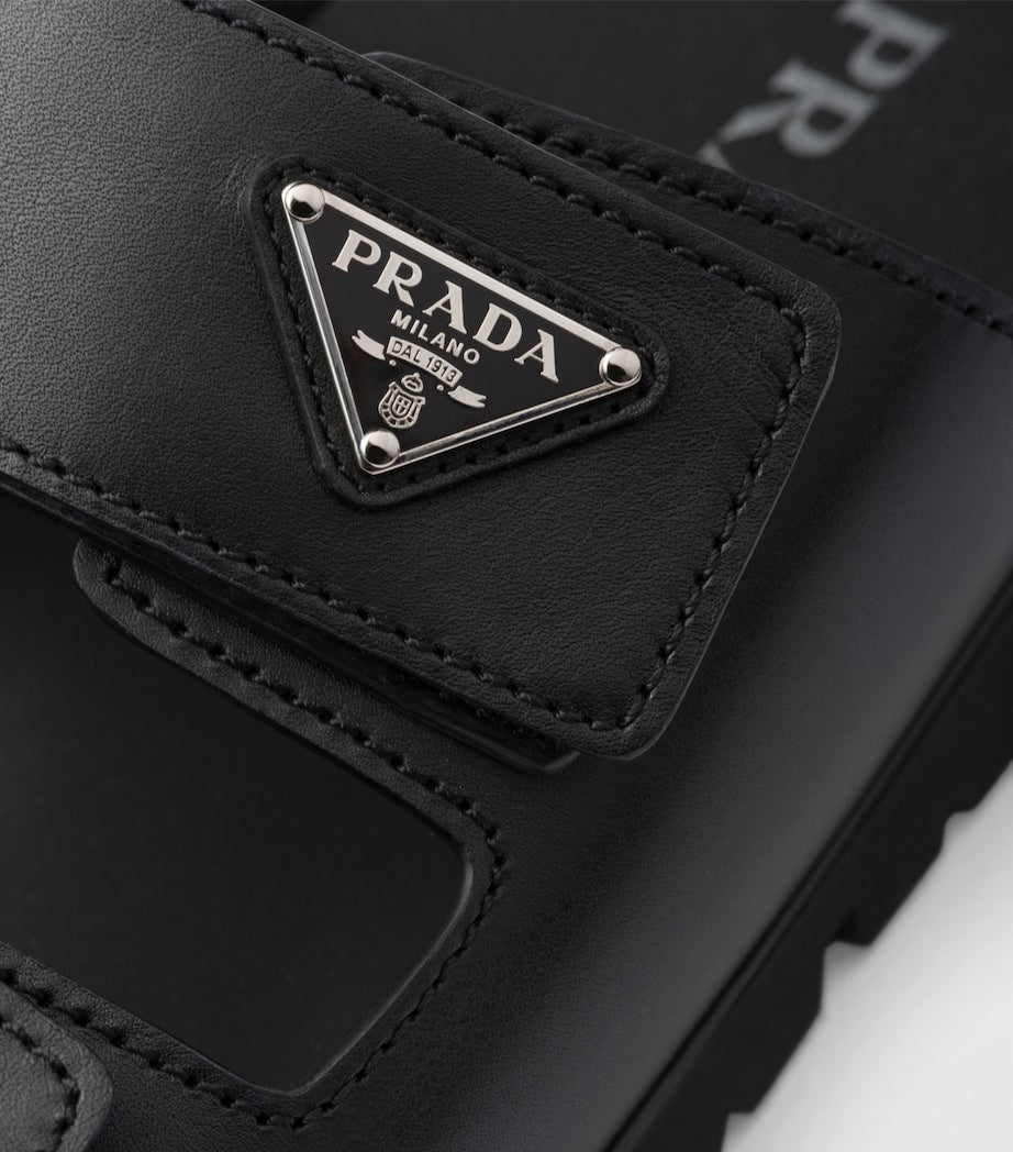 Prada's menswear offering has carved a distinct niche through its combination of utilitarian references and sleek, refined style, creating pieces that slot seamlessly into a capsule wardrobe. These versatile sandals, for example, feature comfortable rubber lug soles, bringing a comfortable, chunky feel that complements the double leather straps that cross the upper.
