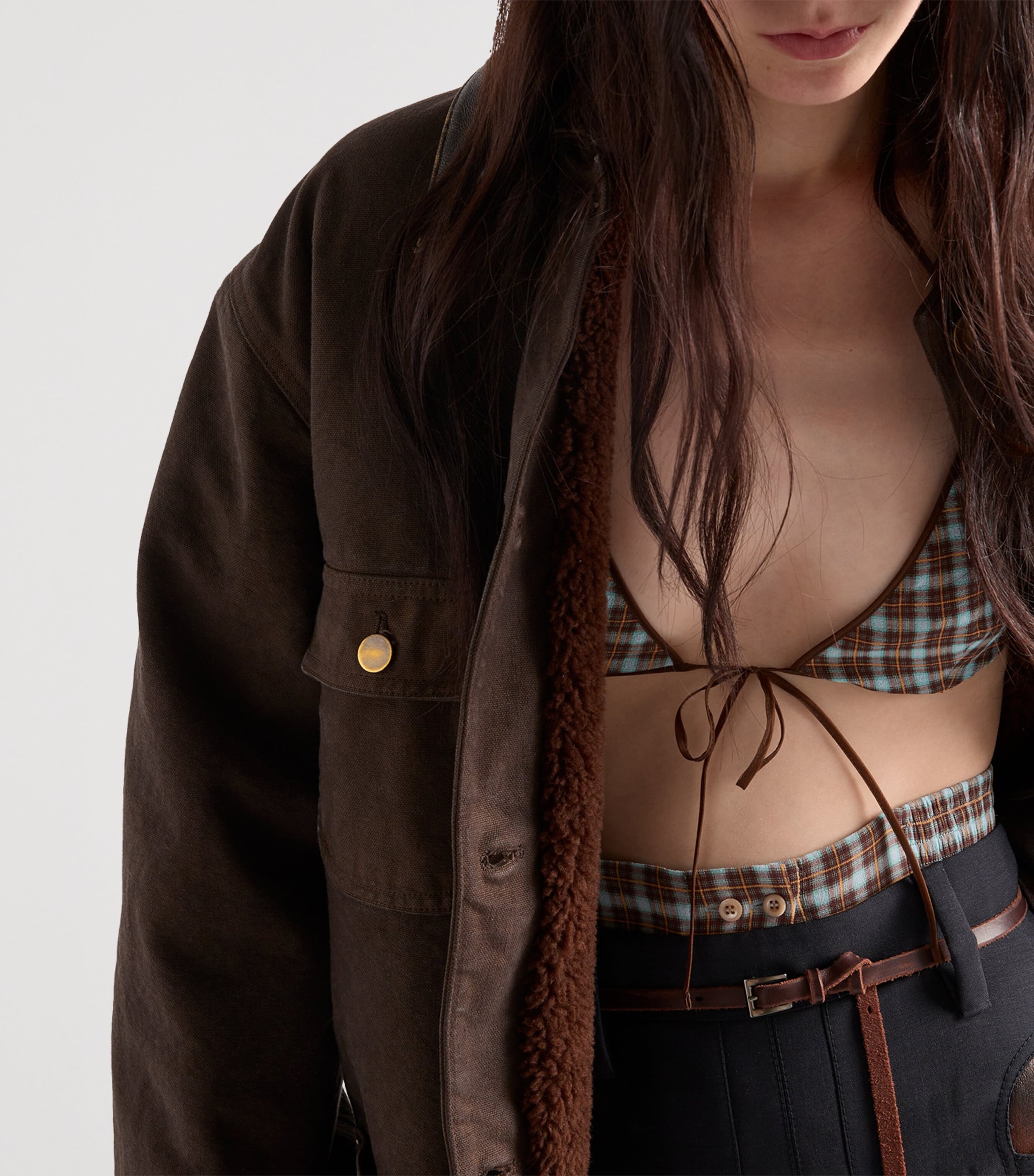 Smooth leather trims help outline the pockets. High-quality materials and timeless silhouettes are part of Prada’s identity, so it comes as no surprise that this midi skirt hails from its Autumn/Winter 2025 collection. The House blends mohair and wool to create its composition, cutting it to a classic straight profile with sharp pleats adorning the front and reverse – a detail that offers a flattering fit and better movement.