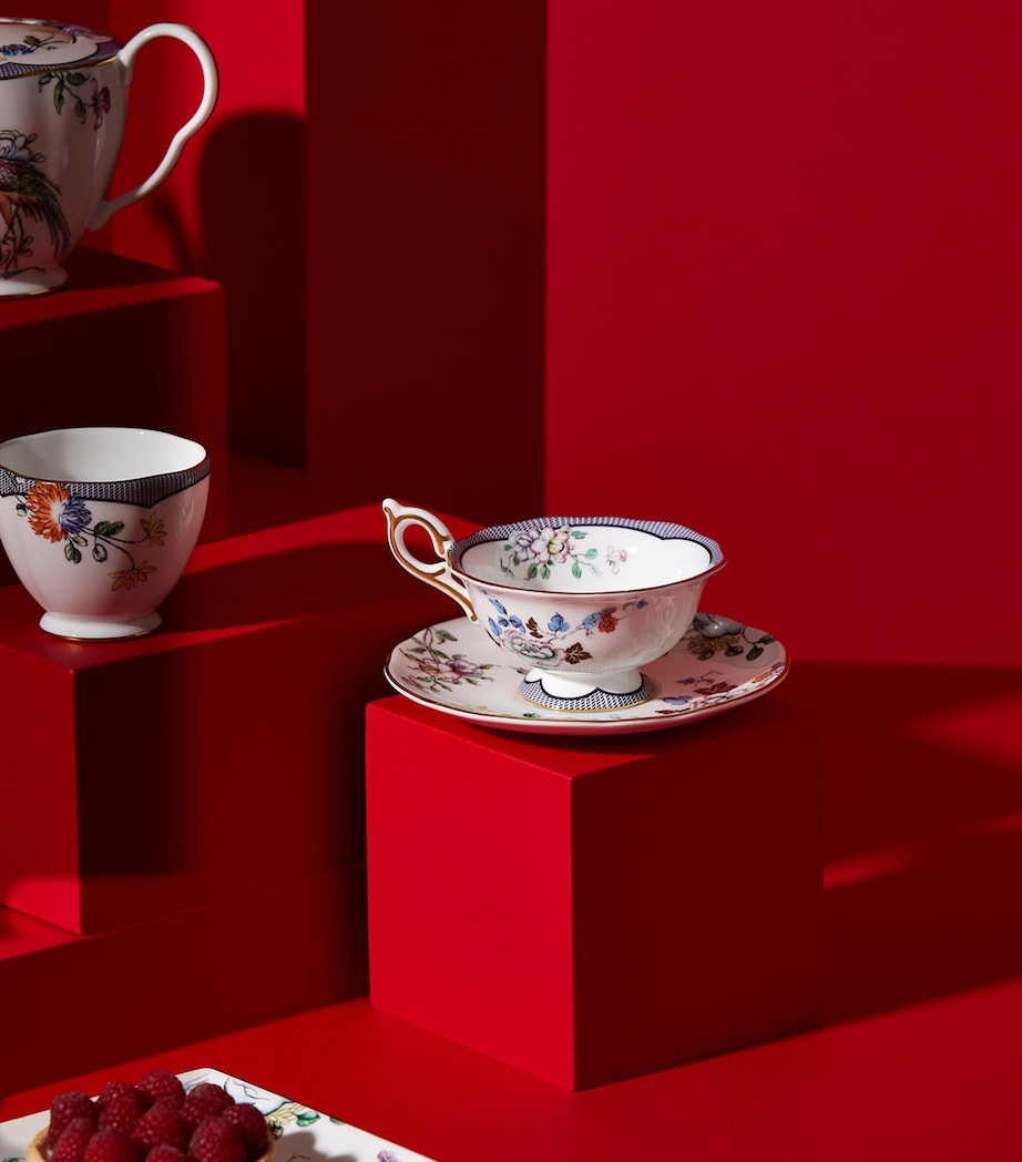 One of the foremost pottery crafters in the world, Wedgwood invites the Fortune sugar bowl and creamer into your teatime repertoire. The fine bone china pieces are animated by a vintage Chinoiserie-inspired floral pattern and trimmed in 22-karat gold, with an elegant gift box making this luxe set an admirable token of appreciation for a loved one.