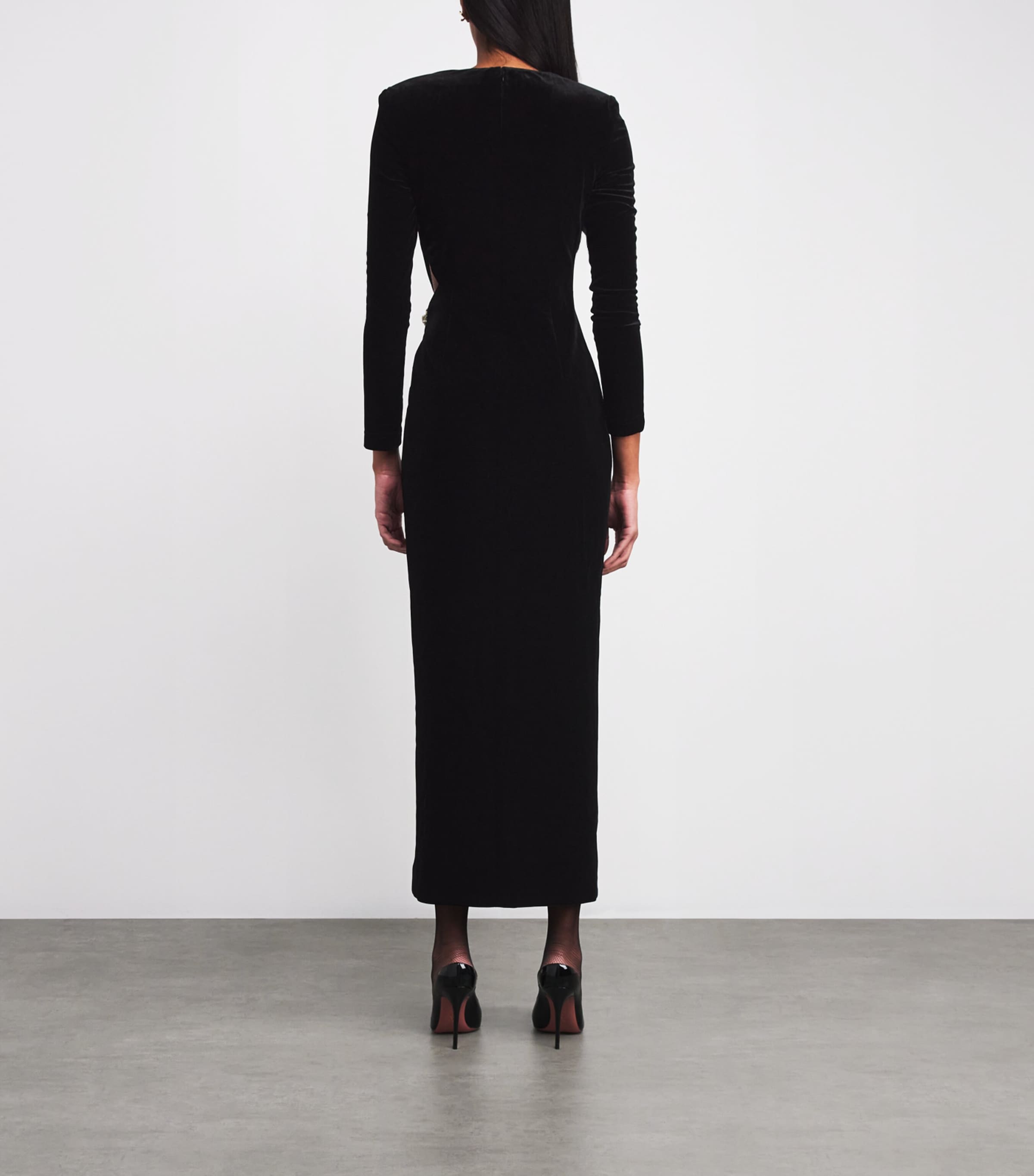 Self-Portrait Velvet Chain-Detail Midi Dress BLACK