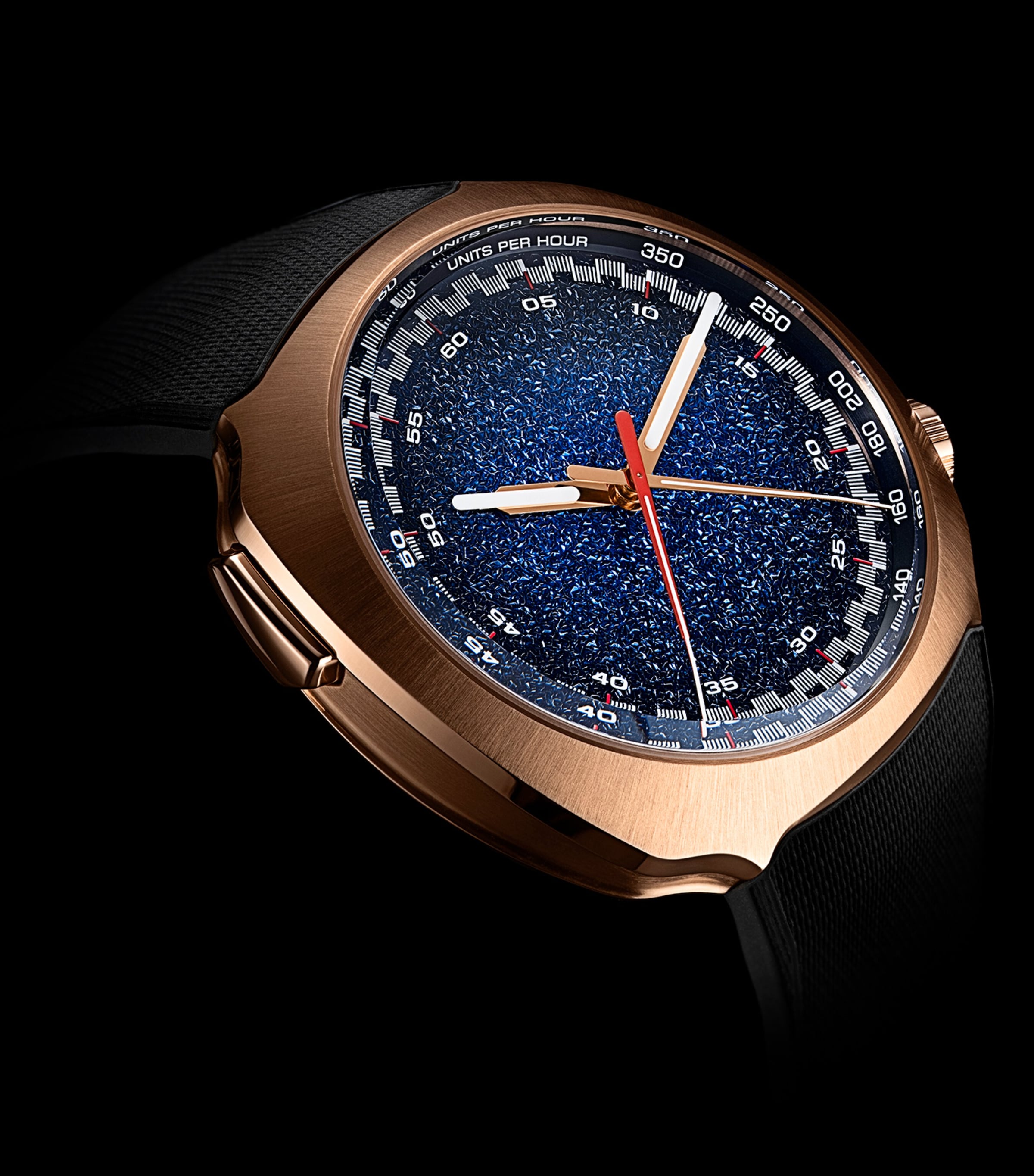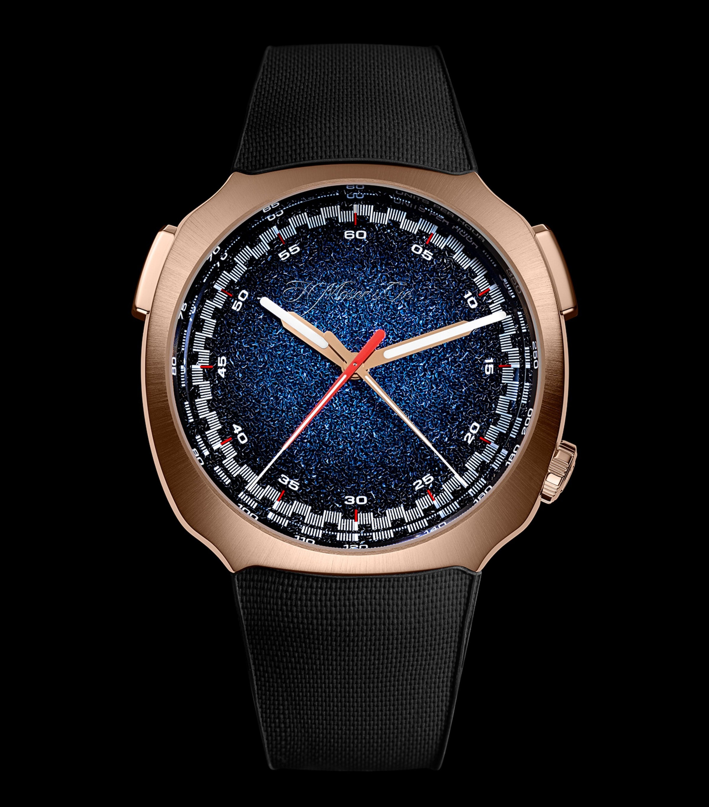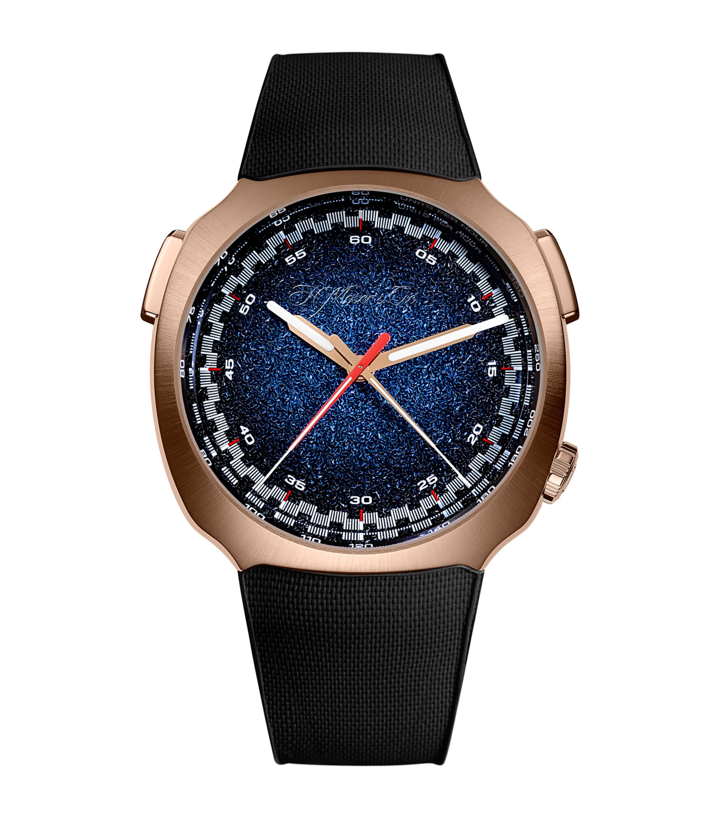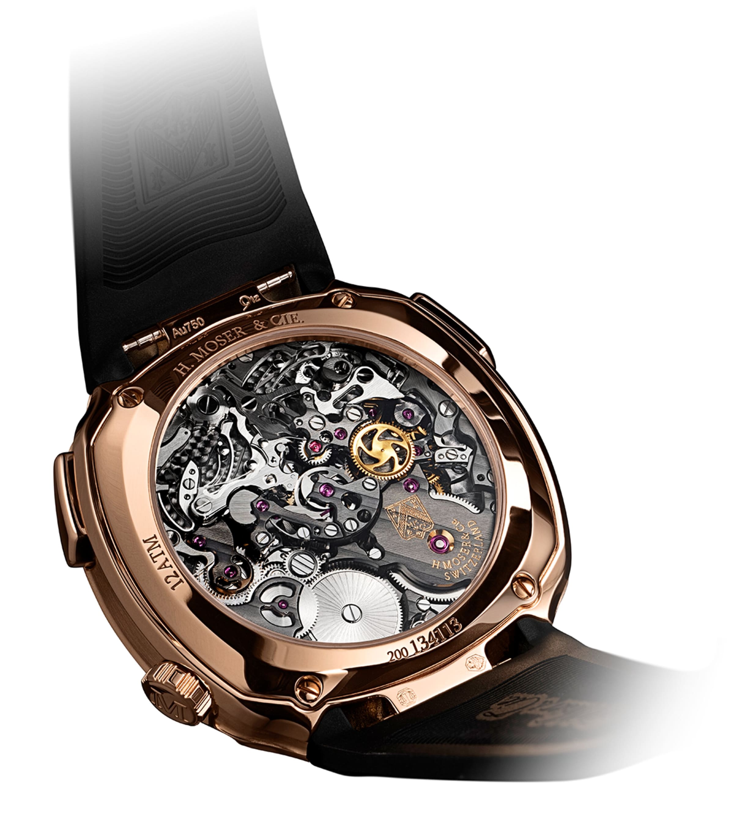 For almost two centuries, H. Moser & Cie has been crafting its Swiss timepieces by using its own in-house techniques. Balancing contemporary elegance with a striking aesthetic, the Streamliner Flyback watch features chronograph second and minute hands that glide across the dial, drawing attention to its frosted fumé finish. The simplicity of this design is underpinned by the complexity of its case back, which gives a glimpse into the HMC 907 movement.