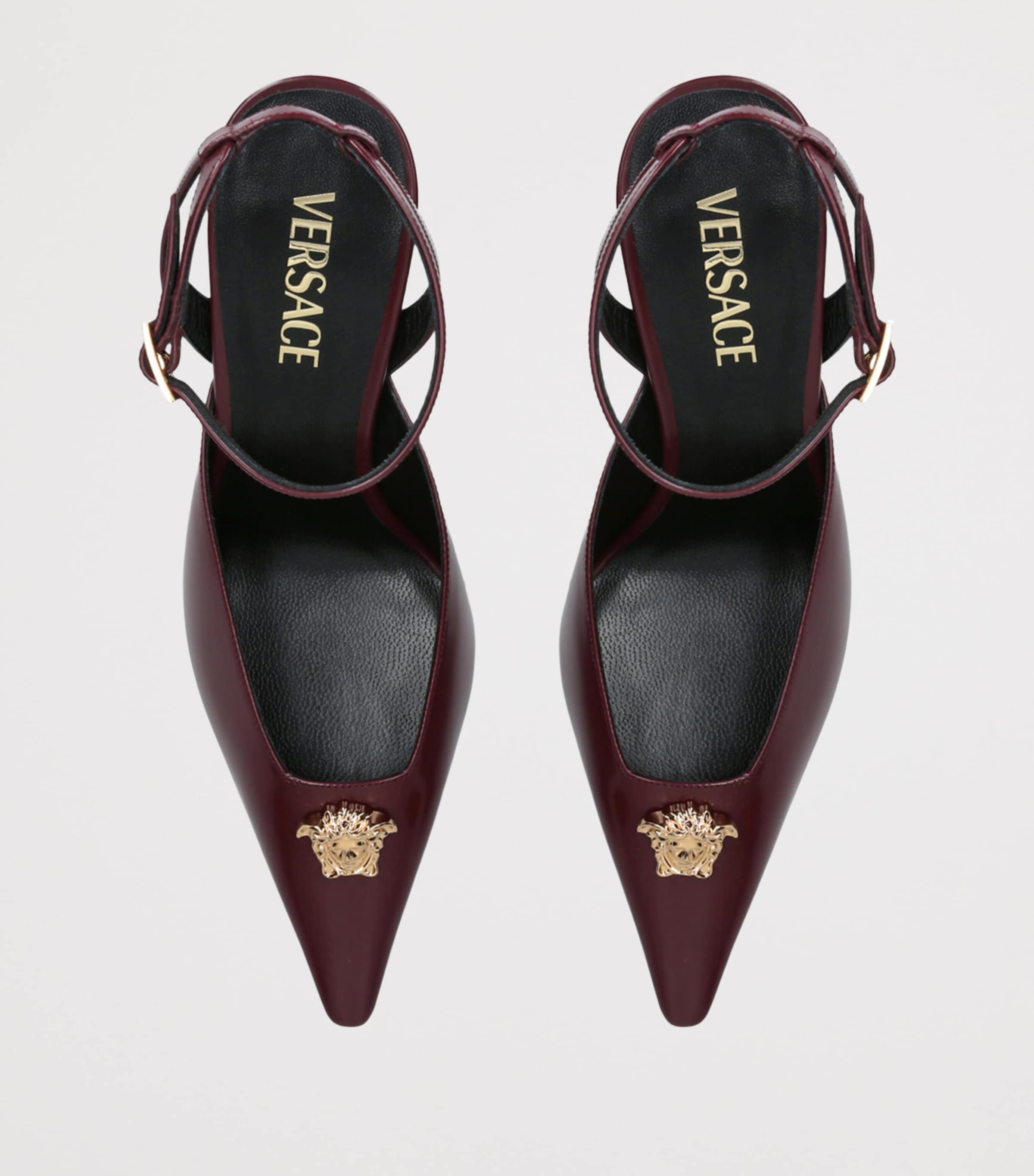 Versace Burgundy Leather La Medusa Slingback Heels 85