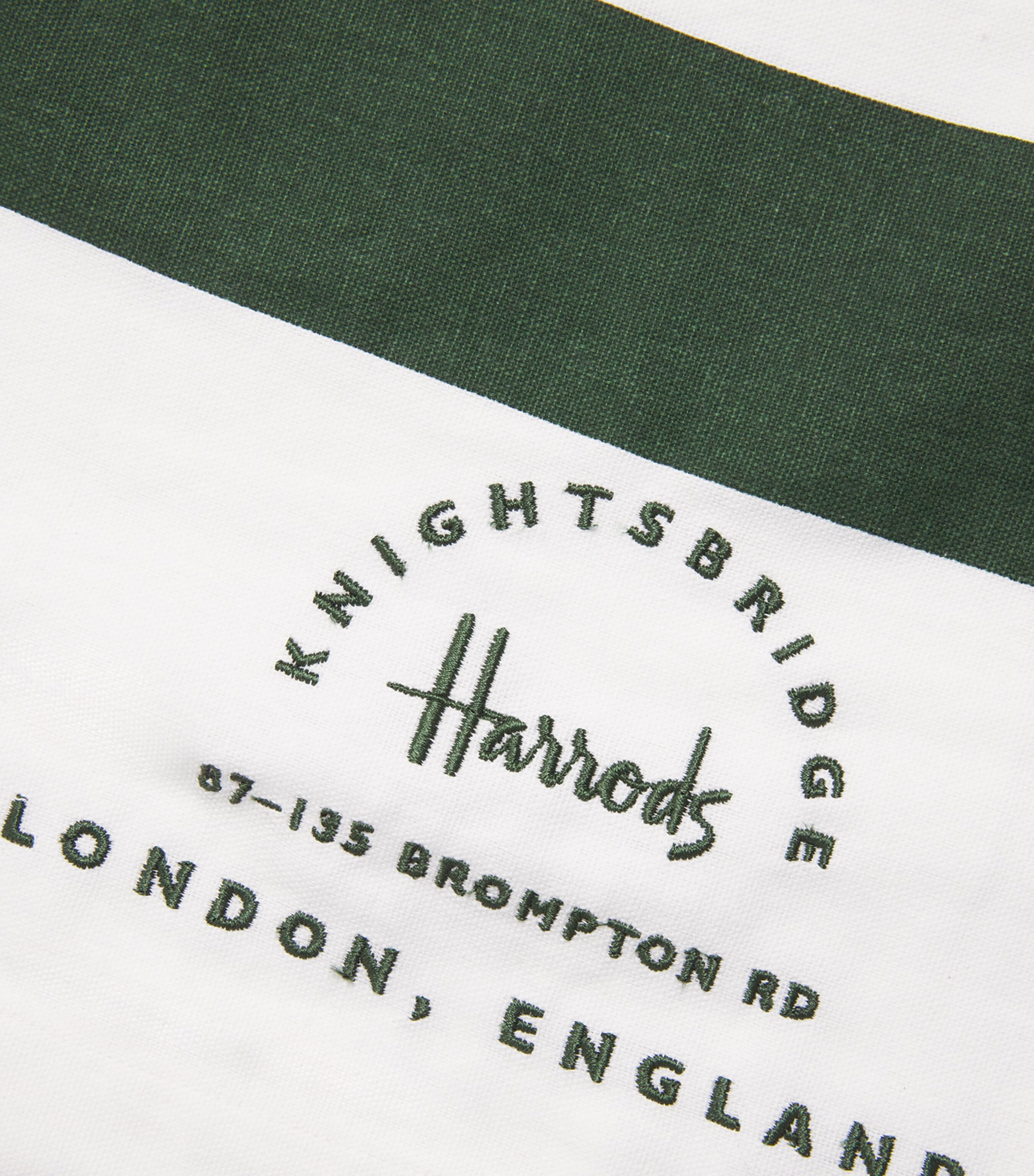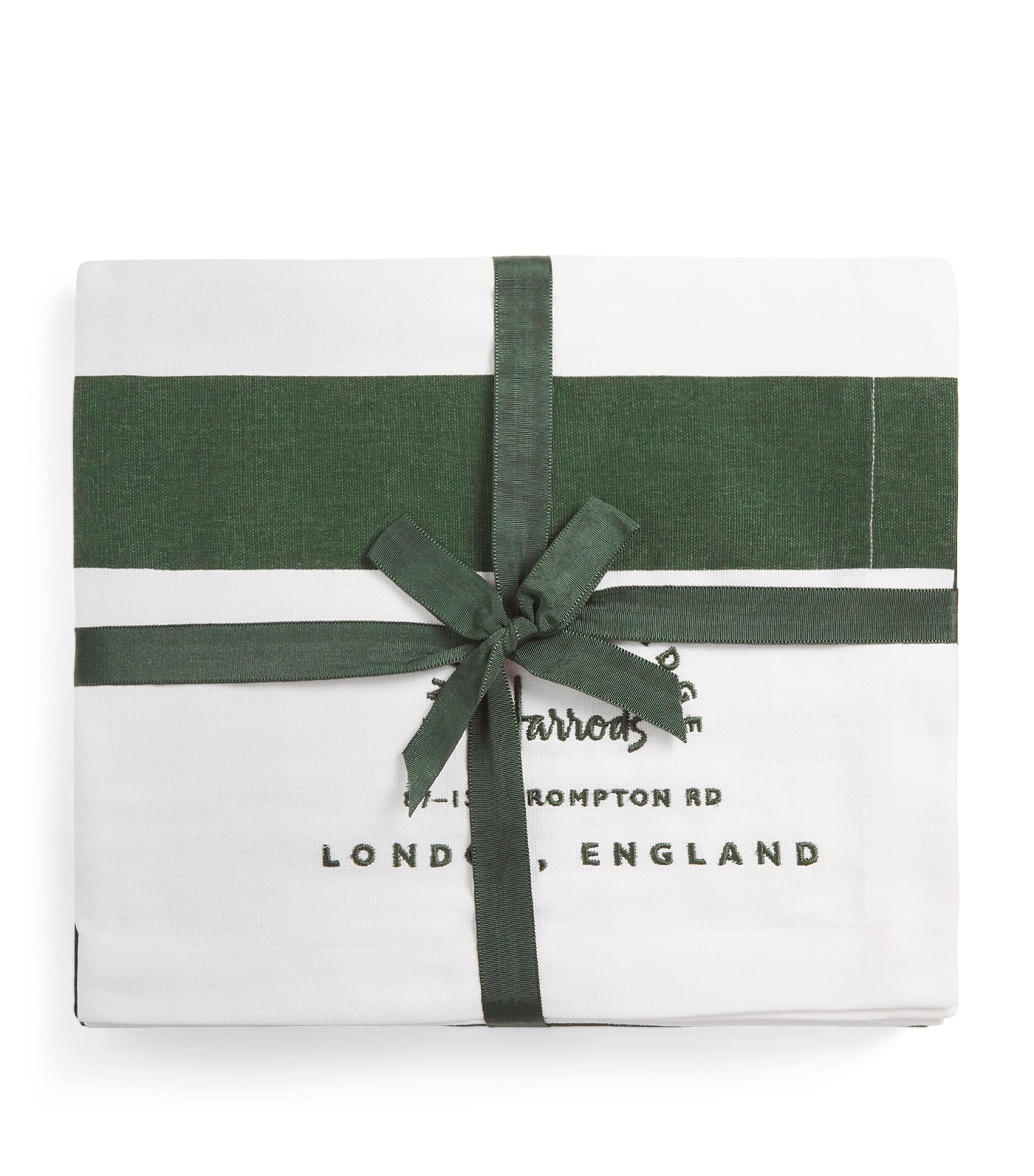 Whether you're looking to impress or cherish a keepsake, a Harrods tablecloth is a surefire way to elevate your dining experience. Of course, elegance is always our priority, with this set showcasing a joyful striped design along with our embroidered heritage logo on the woven cotton canvas.
