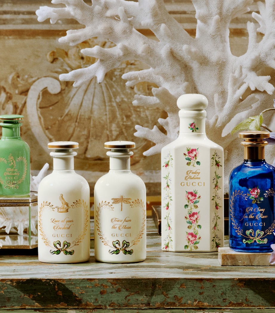 A dragonfly hovering across a thriving pond isn’t just one of life’s most beautiful sights; to Gucci’s Alessandro Michele and master perfumer Alberto Morillas, the majestic creature is a true representation of the Tears from the Moon eau de parfum. Joining The Alchemist’s Garden collection, it’s defined by a bouquet of white peony, lily of the valley and stephanotis, captured within a decadent, dragonfly-adorned bottle that serves as a symbol of lightness, freedom and transformation.