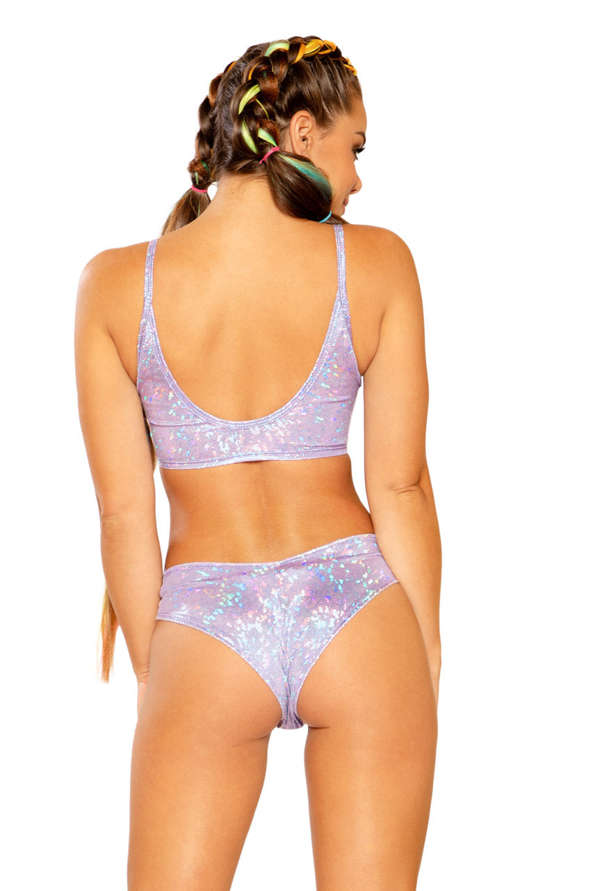 These simple yet shimmering metallic micro shorts feature thick straps and a cheeky cut back.