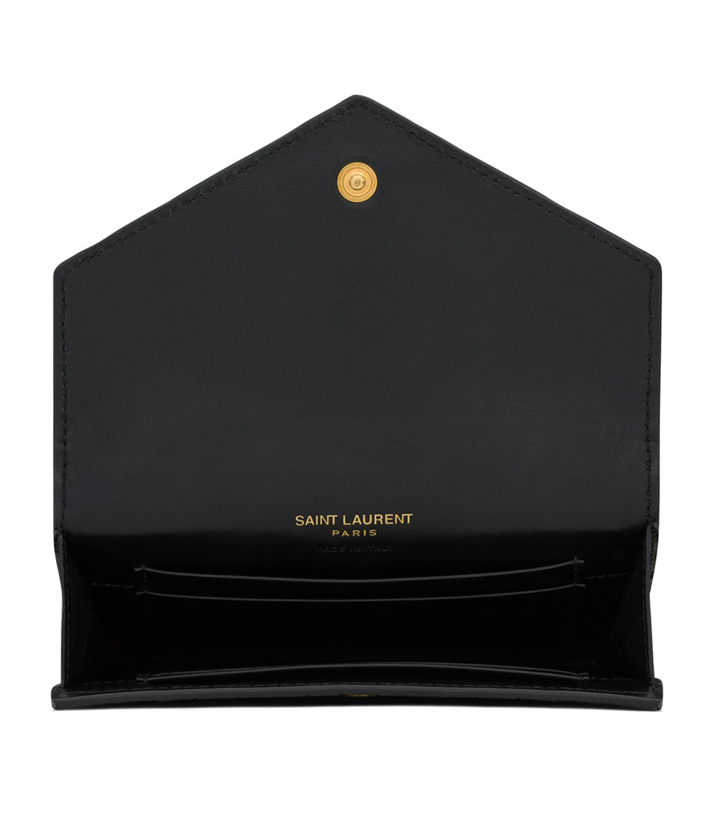 Two things spring to mind when talking about Saint Laurent accessories: embossed patent leather and the gleaming Cassandre logo. The French Maison offers both of these legendary hallmarks on this croc-embossed wallet, with a glossy surface and glimmering central logo exhibiting its timeless elegance.