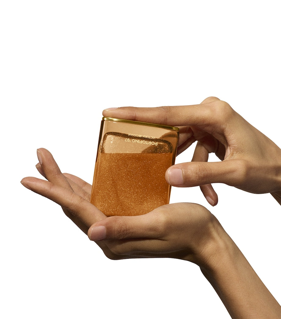 With a simple shake, twist and pour, you'll be whisked away to a luscious Italian escape courtesy of Victoria Beckham Beauty's Golden Shimmer Body Oil. A mix of gold and bronze pearls creates the look of shimmering, sun-kissed skin, while the Portofino '97 scent captures the spark of Victoria and David Beckham's first rendezvous.