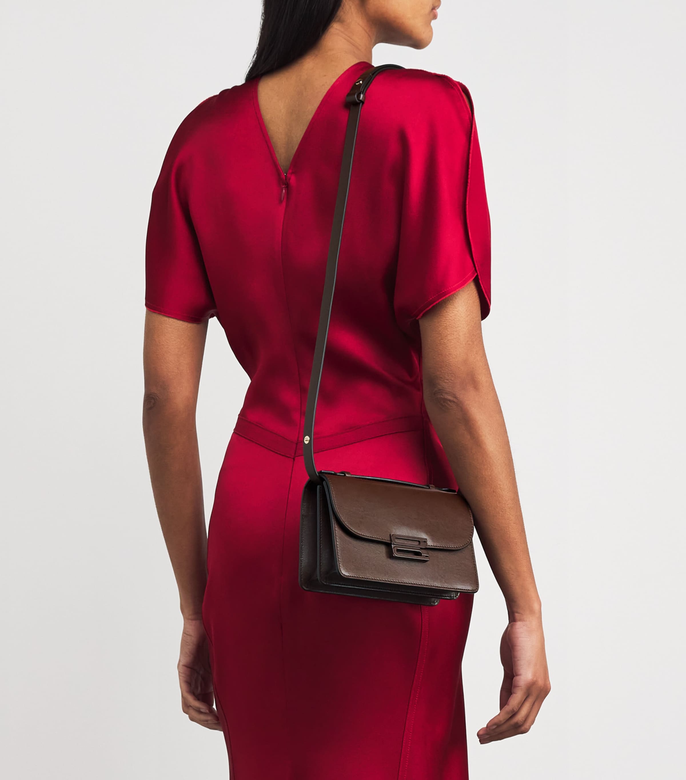 Victoria Beckham Brown Mini Leather Dorian Top-Handle Bag
