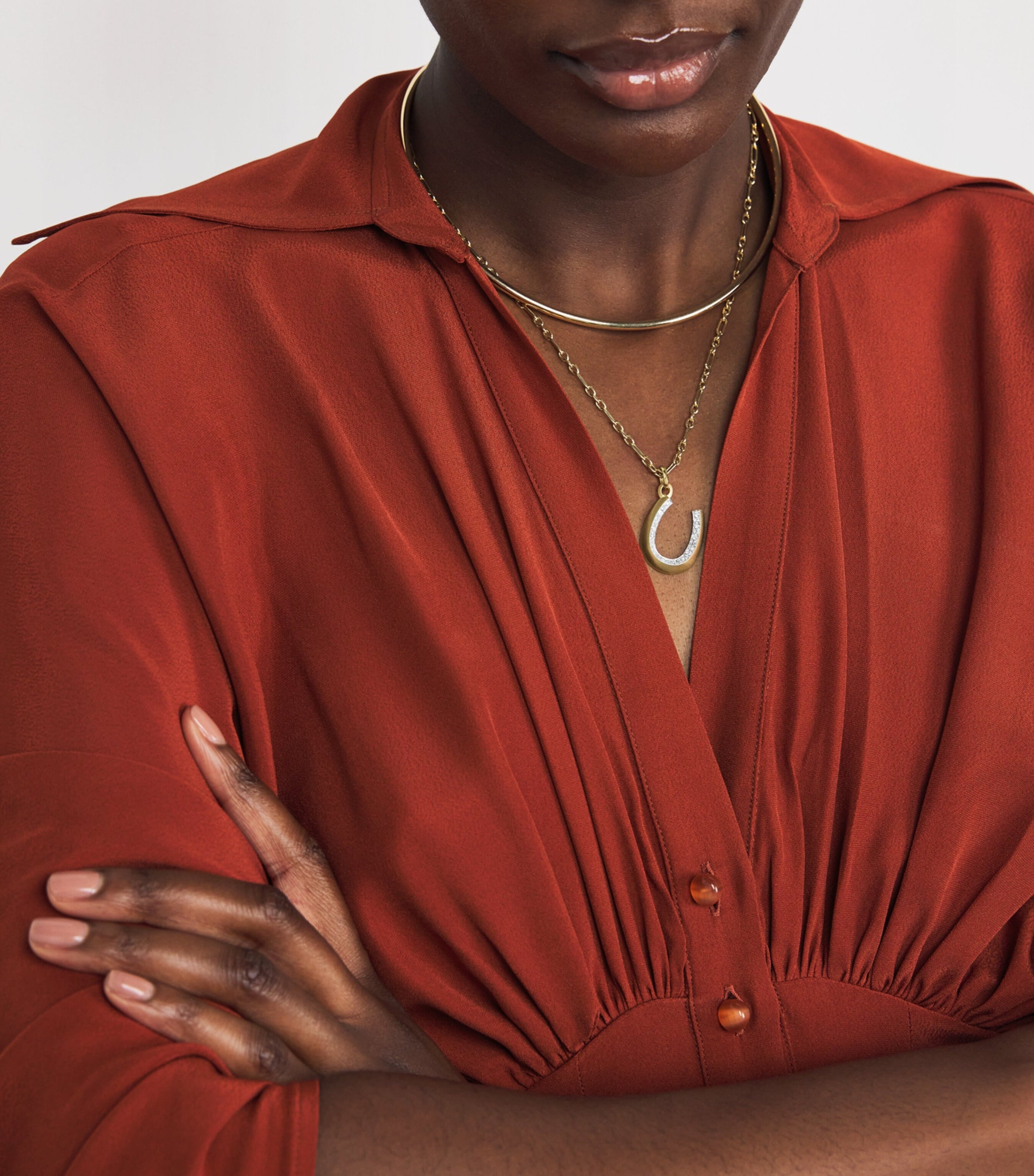 Protective talismans are close to Jade Trau’s heart as the jeweller admires the sentimental nature of designs from the Victorian era. This 18-karat gold and diamond horseshoe charm demonstrates her take on a classic motif; suspend it from a curb chain for a classic look or opt for something more contemporary by stringing it on the label’s Plié collar.