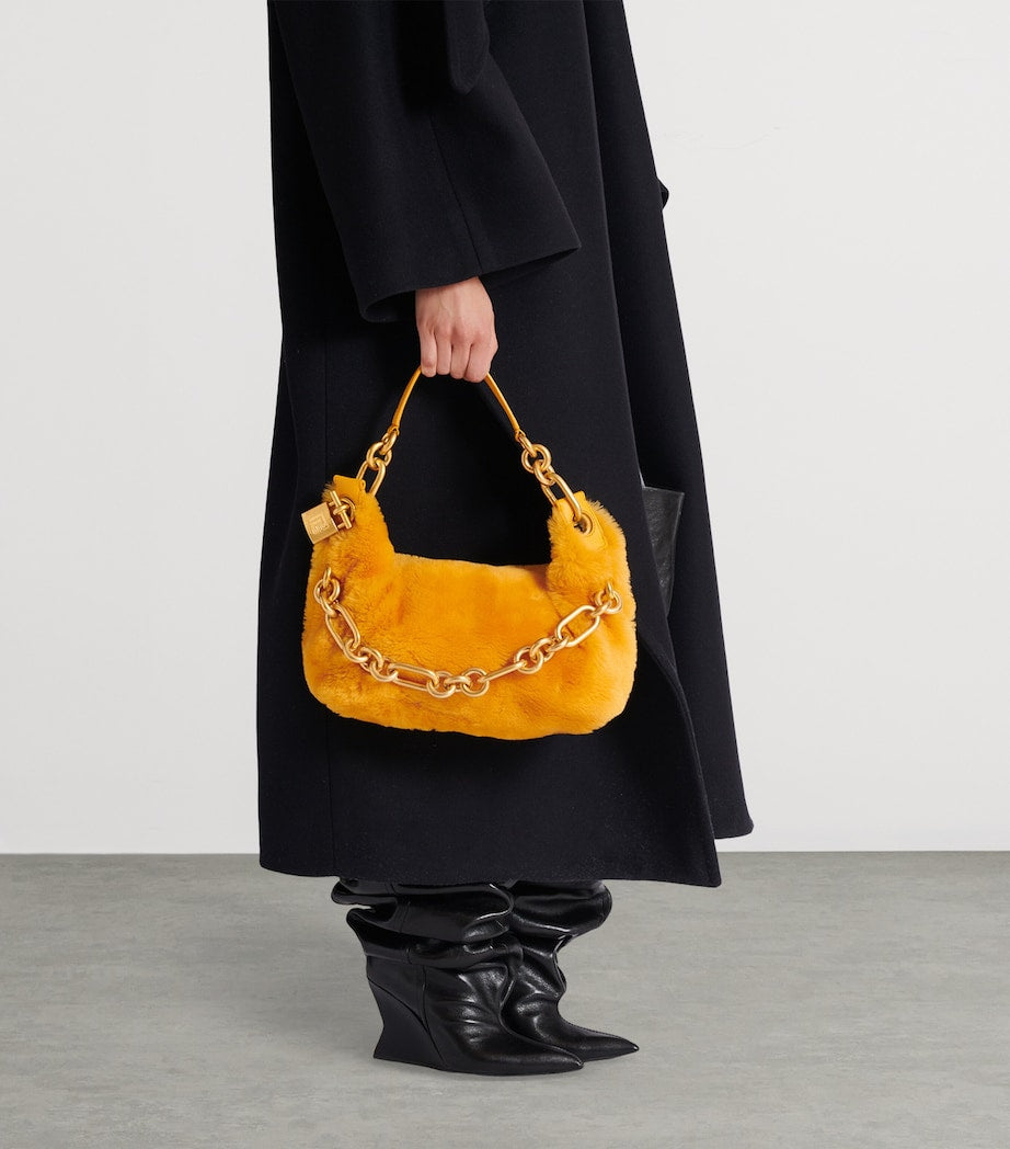 A theme of fearlessness and resilience runs throughout Balmain’s latest collection – an ode to the label’s unwavering commitment to stepping outside fashion’s conventional bounds. Olivier Rousteing’s motif of choice for the Sync collection is statement hardware, drawing heavily from utilitarian codes in the label’s ’50s archives. This shoulder bag embodies that vision, featuring a bold gold-tone chain that transforms function into fierce decoration.
