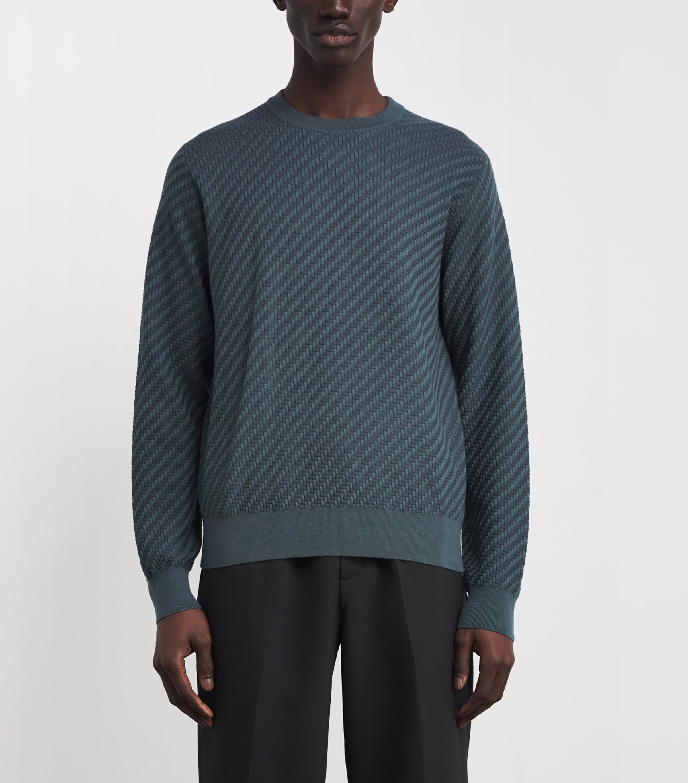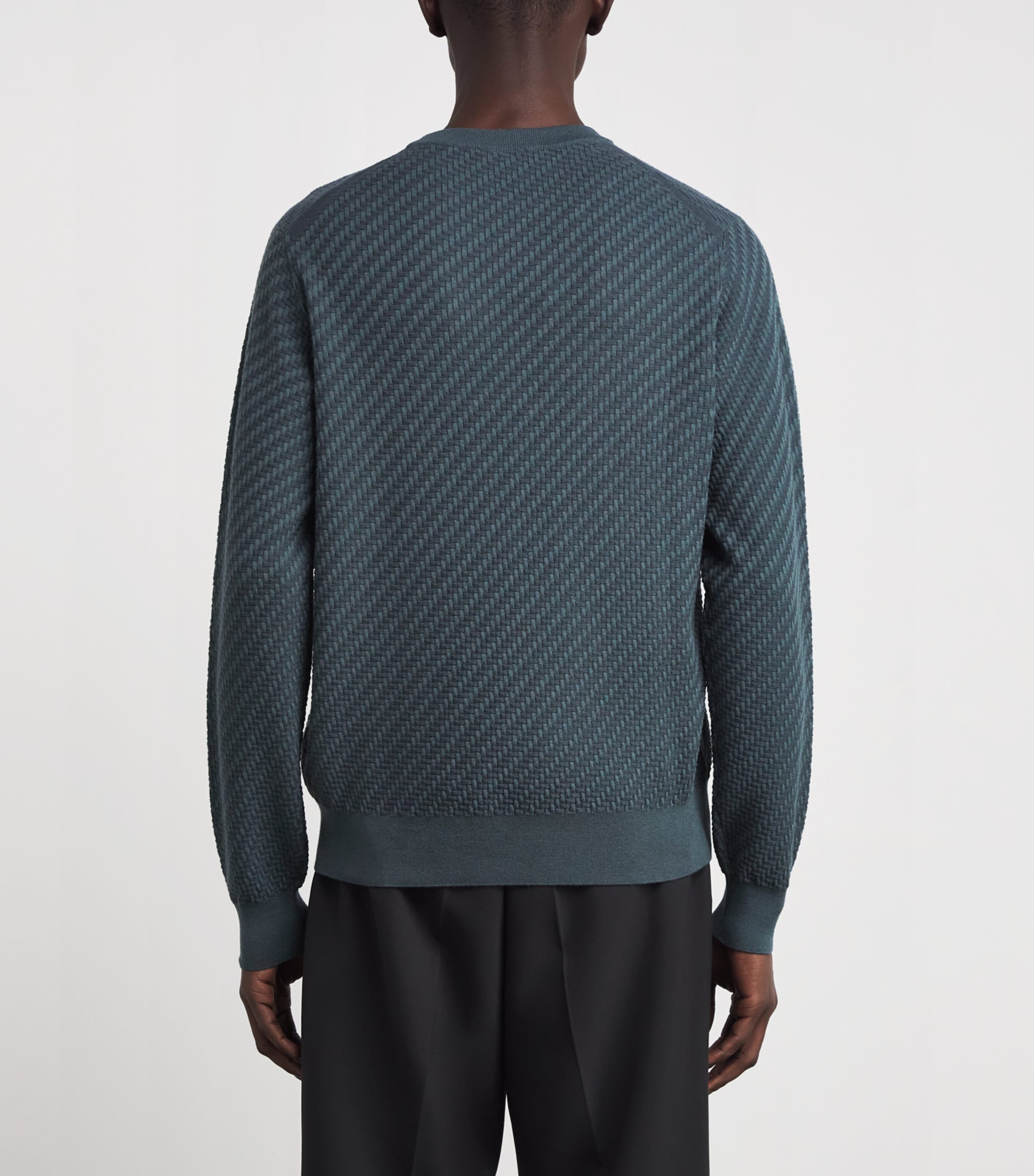Brioni Green Cotton-Silk-Cashmere Trama Weave Sweater