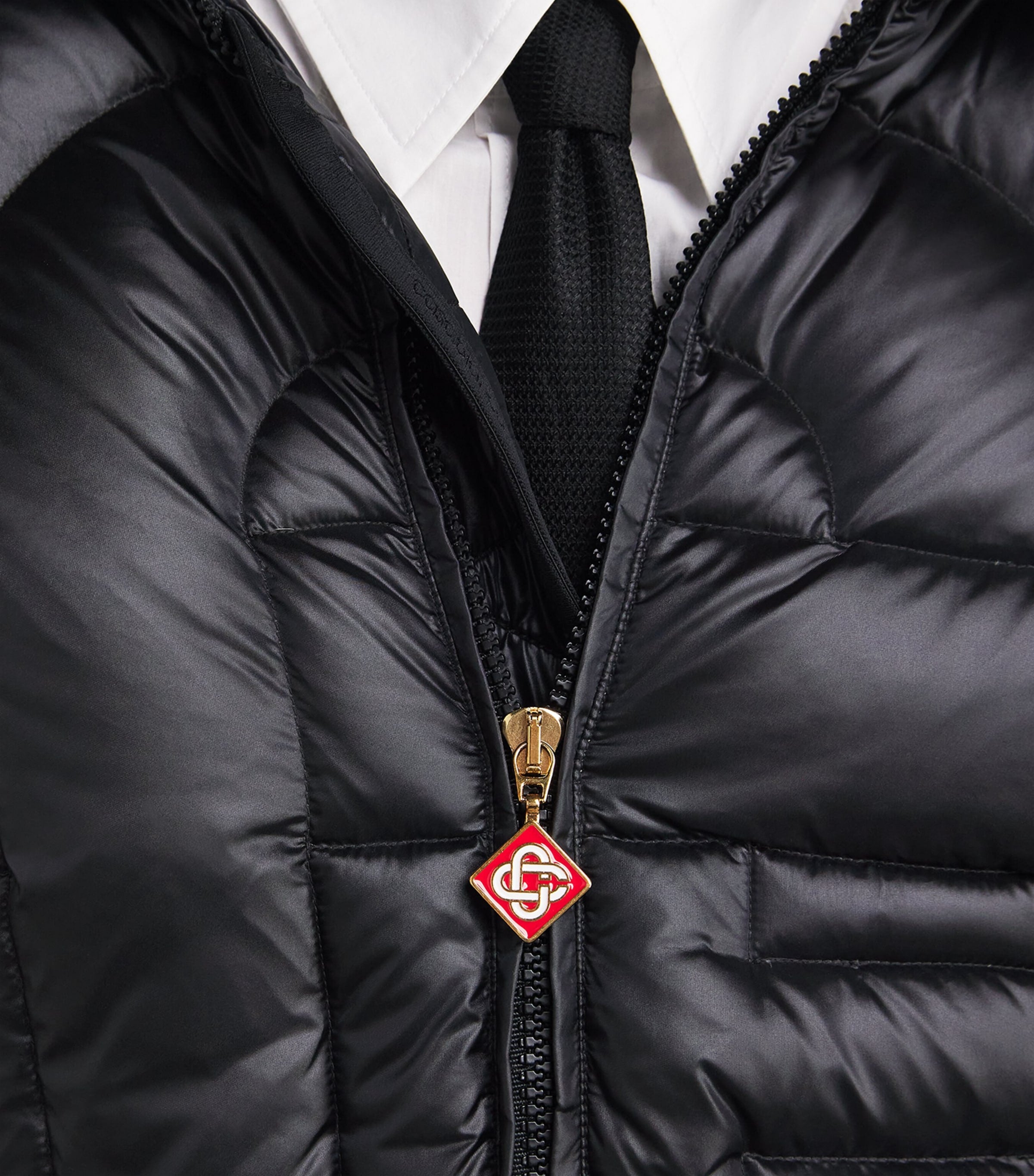 An innovative play on the construction of the puffer jacket.Since its inception, Casablanca has been renowned for its intricate prints and motifs, with its famed silk shirts being renewed with hand-illustrated designs every season. Here, it showcases how that meticulous attention to detail crosses over into the winter season; playing on the functional role of baffles of down, the puffer jacket creates a three-dimensional render of its Diamond monogram, a logo that's mirrored on the gold-tone zipper pull.
