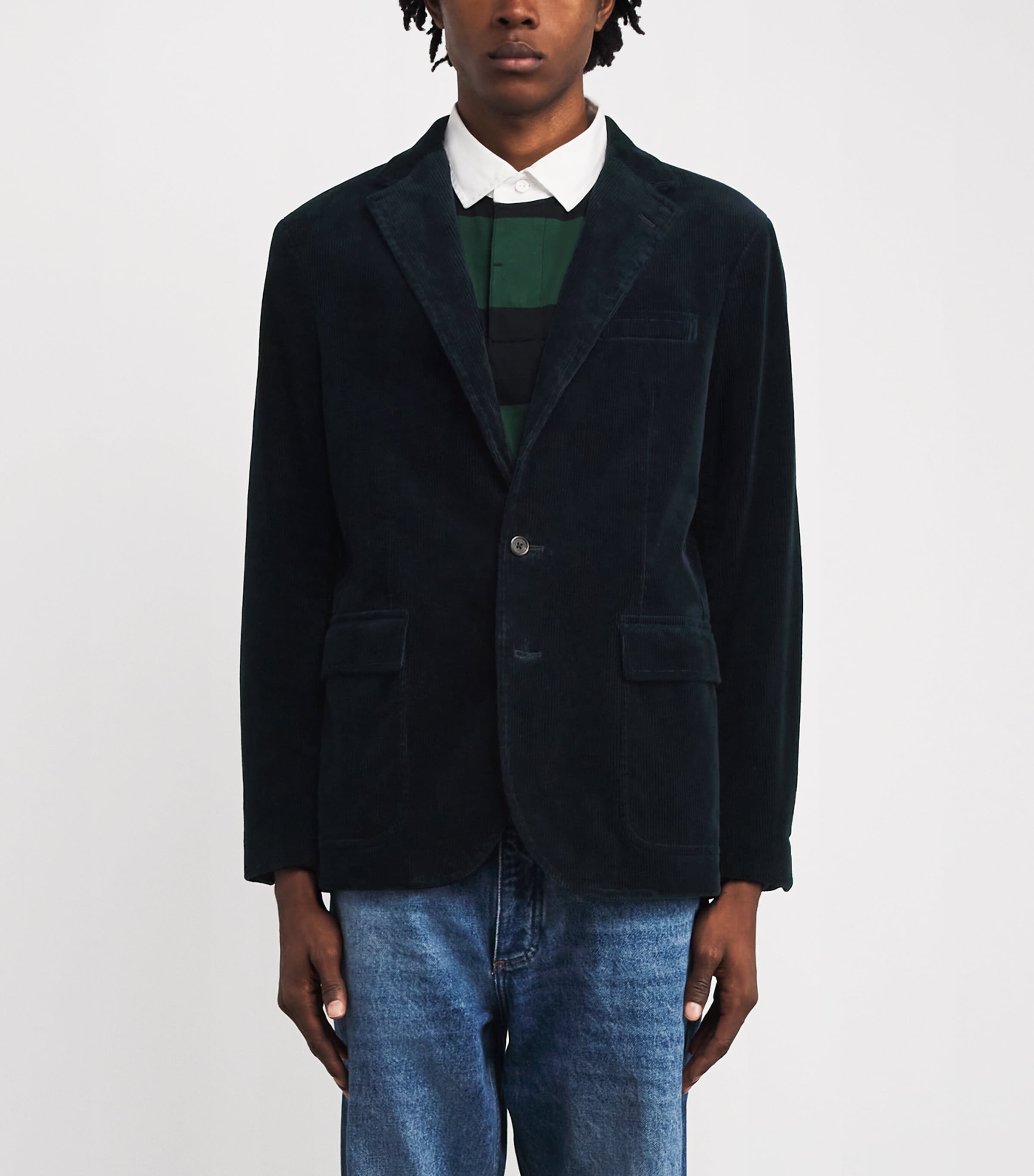 Wide-wale corduroy brings a retro appeal to the timeless silhouette.