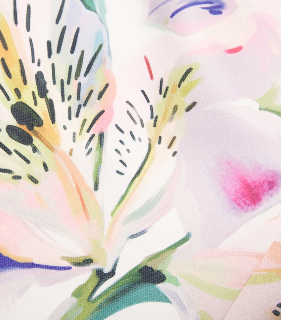 Blooming lilies recall the look of Matisse's Impressionist paintings. Applied to a white satin base to allow the colours to stand out, the florals on the Leo Lin Caroline midi dress are inspired by the watercolour tradition of the eponymous designer’s native China. Keep accessories minimal to allow the fitted shape and romantic look of the piece to shine.