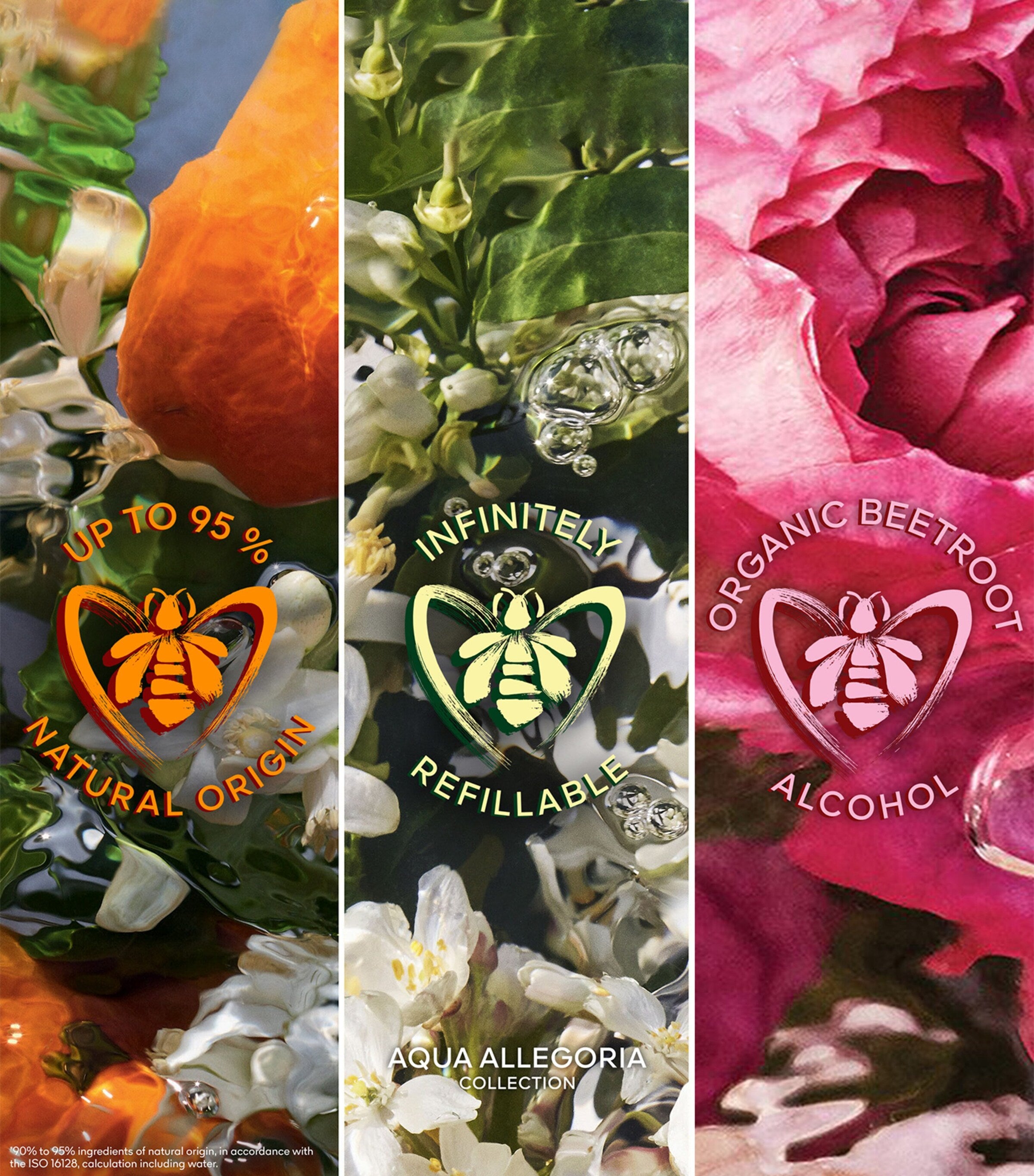 From Guerlain’s Aqua Allegoria Forte collection, the Rosa Rossa eau de parfum embodies the unexpected encounter between delicate rose and patchouli with peach, pear and sandalwood notes. The guiding thread of the line is blackcurrant, a precious berry fruit which appears here as a sparkling top note – perceived immediately when spritzing from the precious glass bottle.