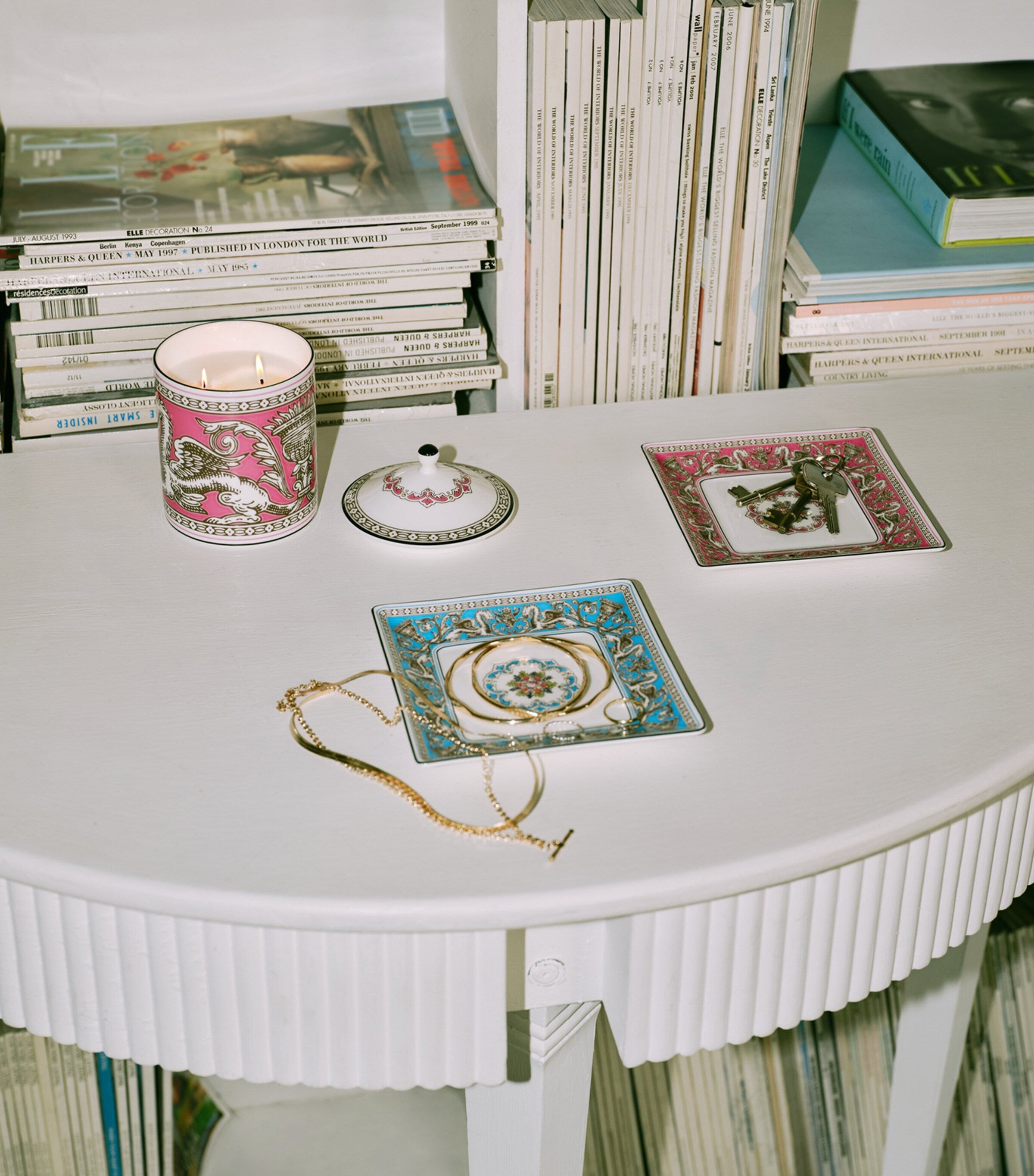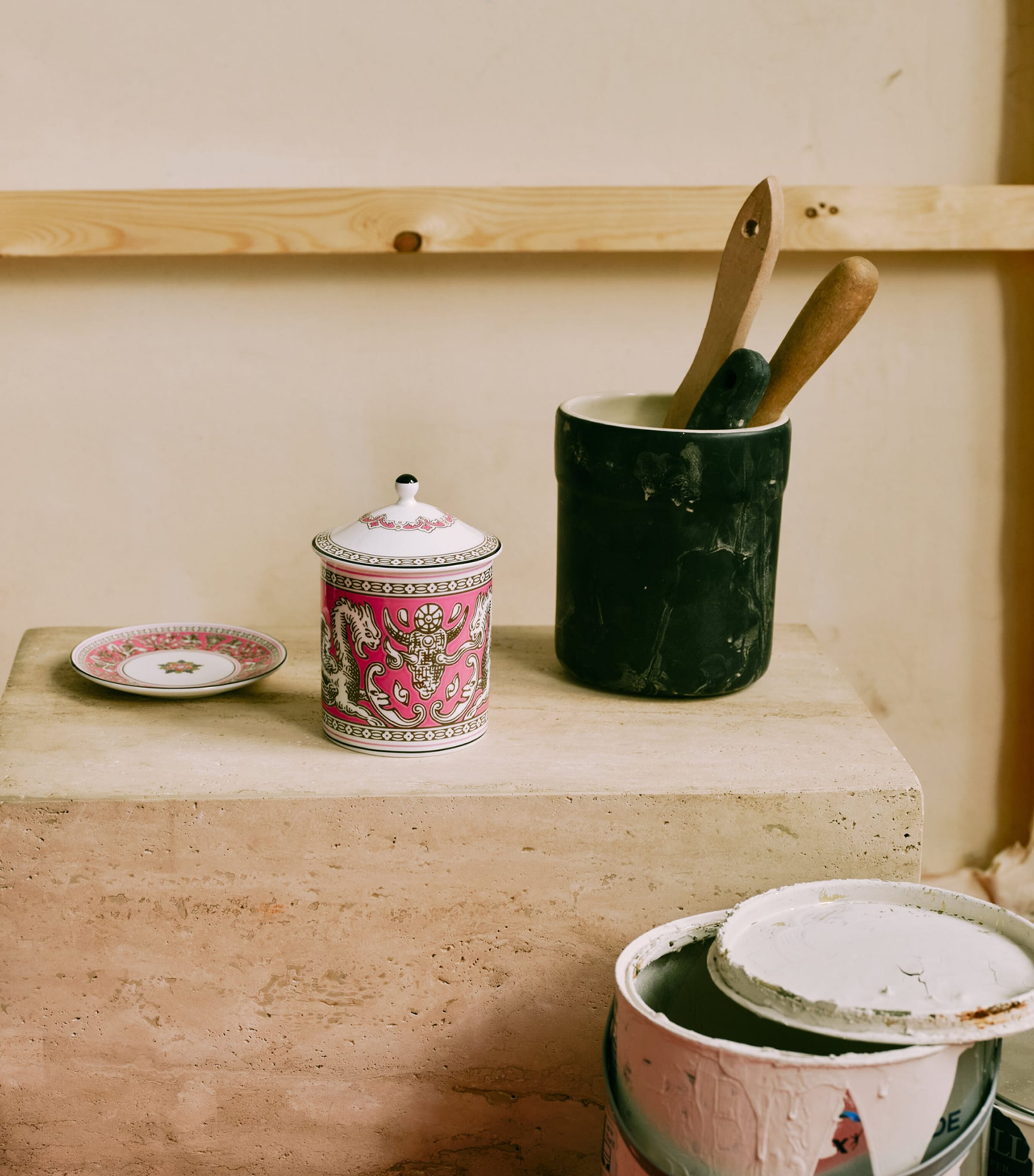 Adorned with striking motifs from Wedgwood’s Florentine collection, the Fuchsia candle emits a rich, woody scent to elevate your abode. Handmade and filled in England, it also doubles as a fine objet d’art – what more could you want?