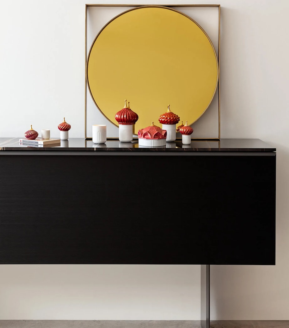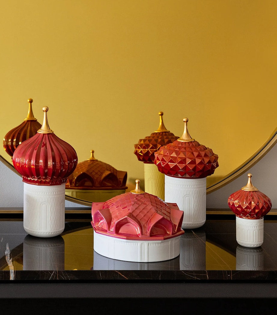 The 1001 Nights collection from Lladró is inspired by exciting stories from One Thousand and One Nights. Expertly scented with cassis, lotus flower and frankincense, this hand-etched candle perfectly harmonises its fruity undercurrents, while the dome is decorated with a 22-karat gold lustre pinnacle, making it a stunning piece that doubles as an objet d'art once the wax runs out.