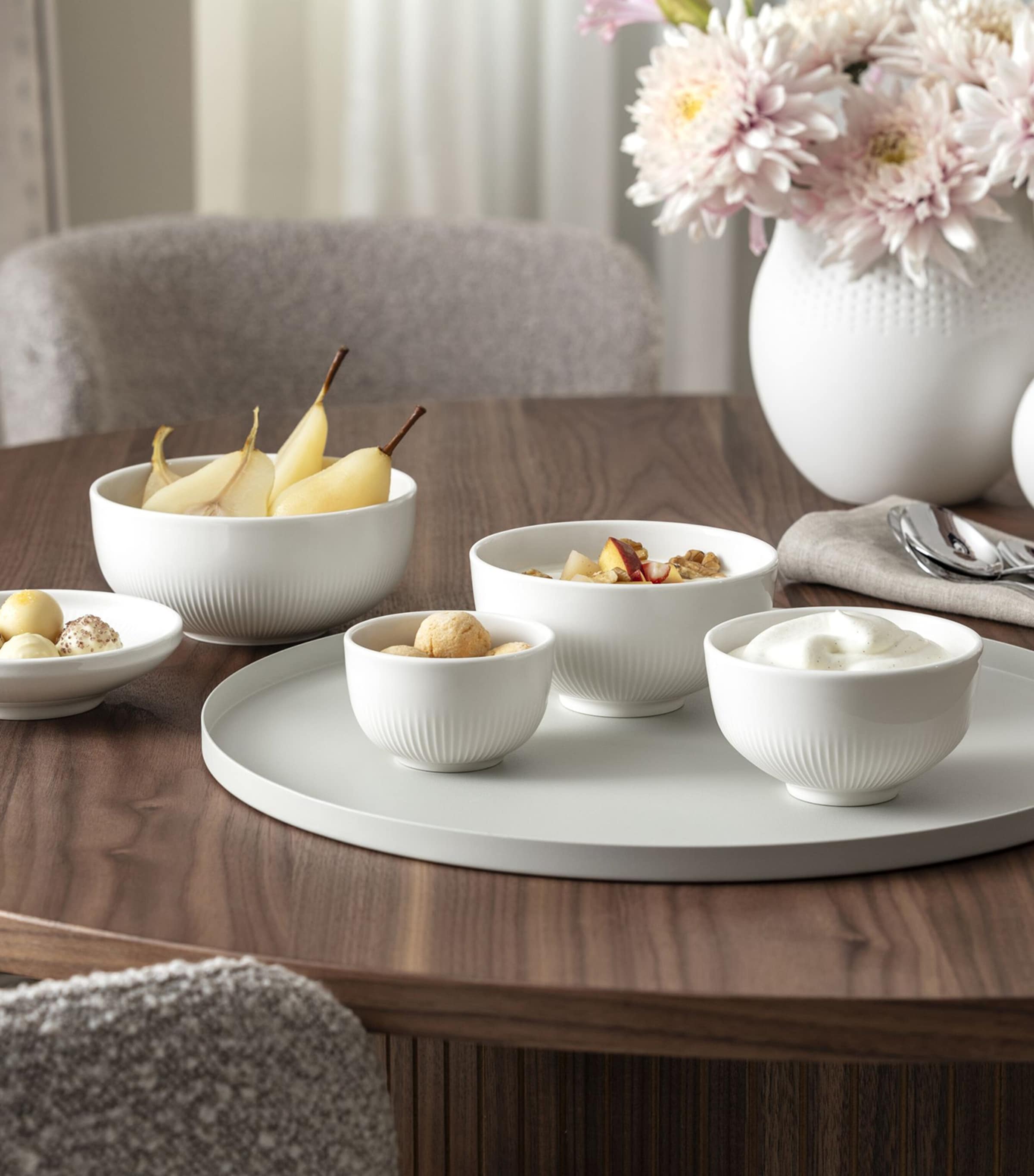 Villeroy & Boch’s tableware collections are often born out of artistic observation, and the Afina series is no different. Inspired by the pursuit of uniqueness and sanctuary, the designer combines minimalist shapes with delicate, handcrafted details to create the Afina sugar bowl, whose silhouette mimics concentric rays of sunshine via a tactile ring-shaped relief and concealed base.