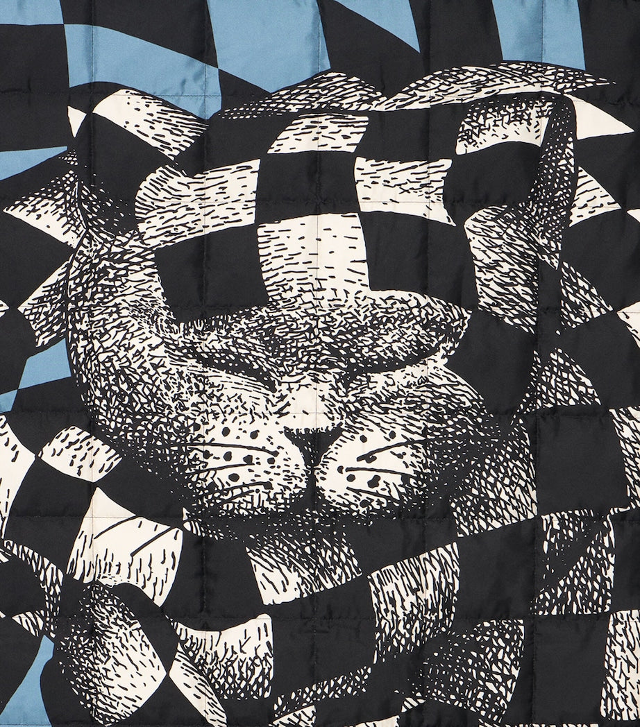 A cat curled up on a bed or sofa is no doubt a familiar sight – that is, unless the cat in question is Fornasetti’s, seen here upon the Plaid High Fidelity throw. The sleeping feline is covered in a graphic chequerboard pattern that complements the merino wool piece’s high-contrast harlequin print. Despite the bold design, the cat appears sleeping soundly – its presence will no doubt inspire you to do the same.