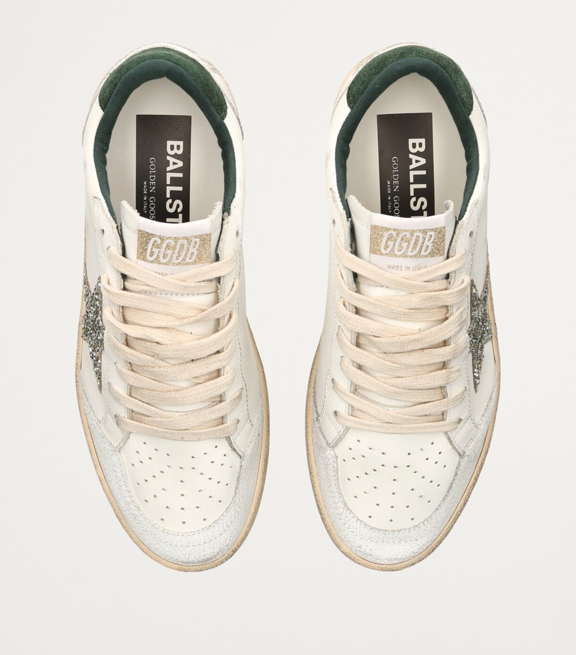 A glitzy star contrasts the signature distressed aesthetic of Golden Goose.Instantly recognisable thanks to the signature star appliqué at the side, the Ball Star sneakers are proof that Golden Goose continues to set the tone when it comes to your off-duty footwear portfolio. This Italian-crafted, leather-suede pair showcases the vintage-inspired, well-worn aesthetic that characterises the label's on-the-pulse takes on streetwear statements.Details