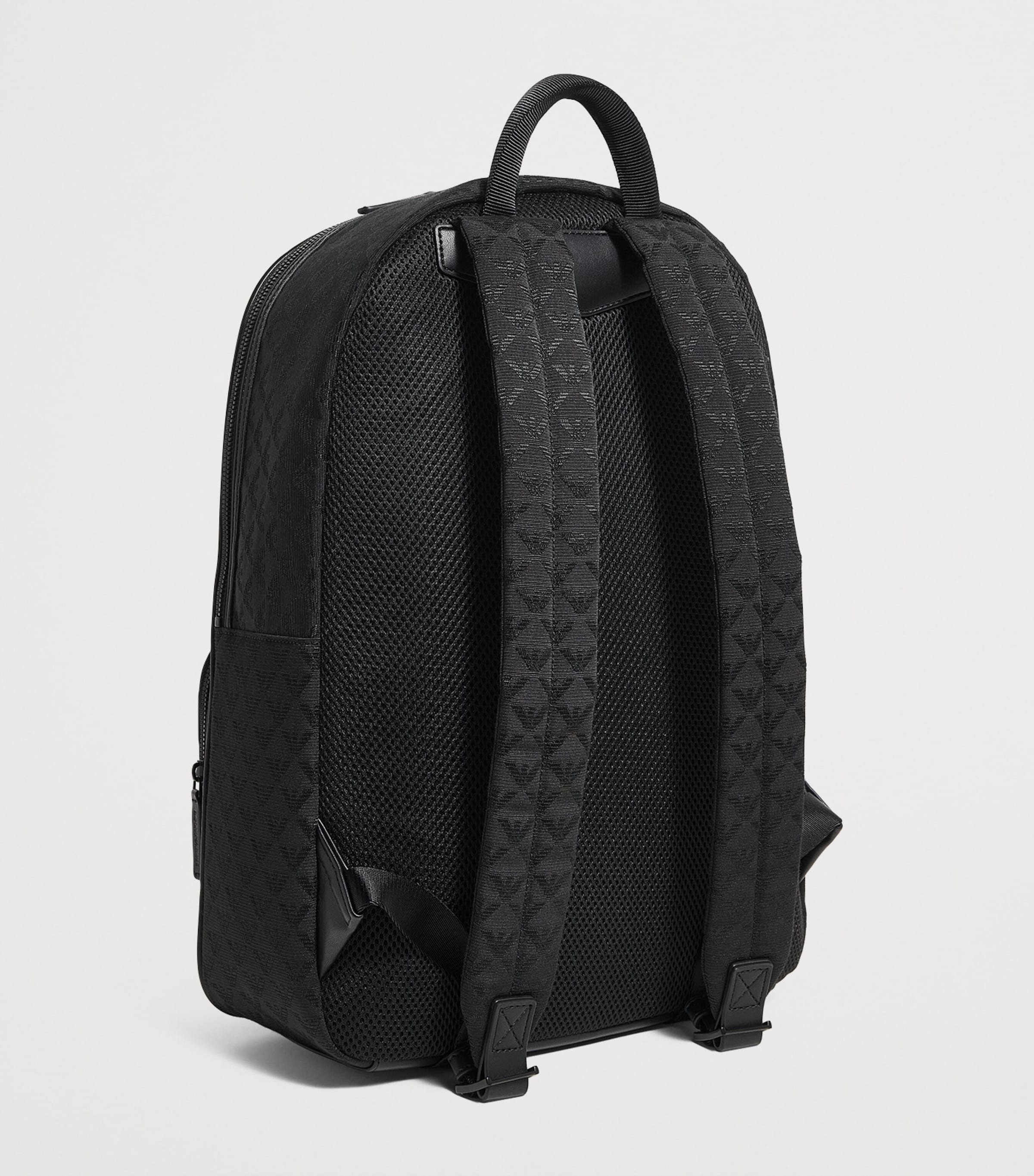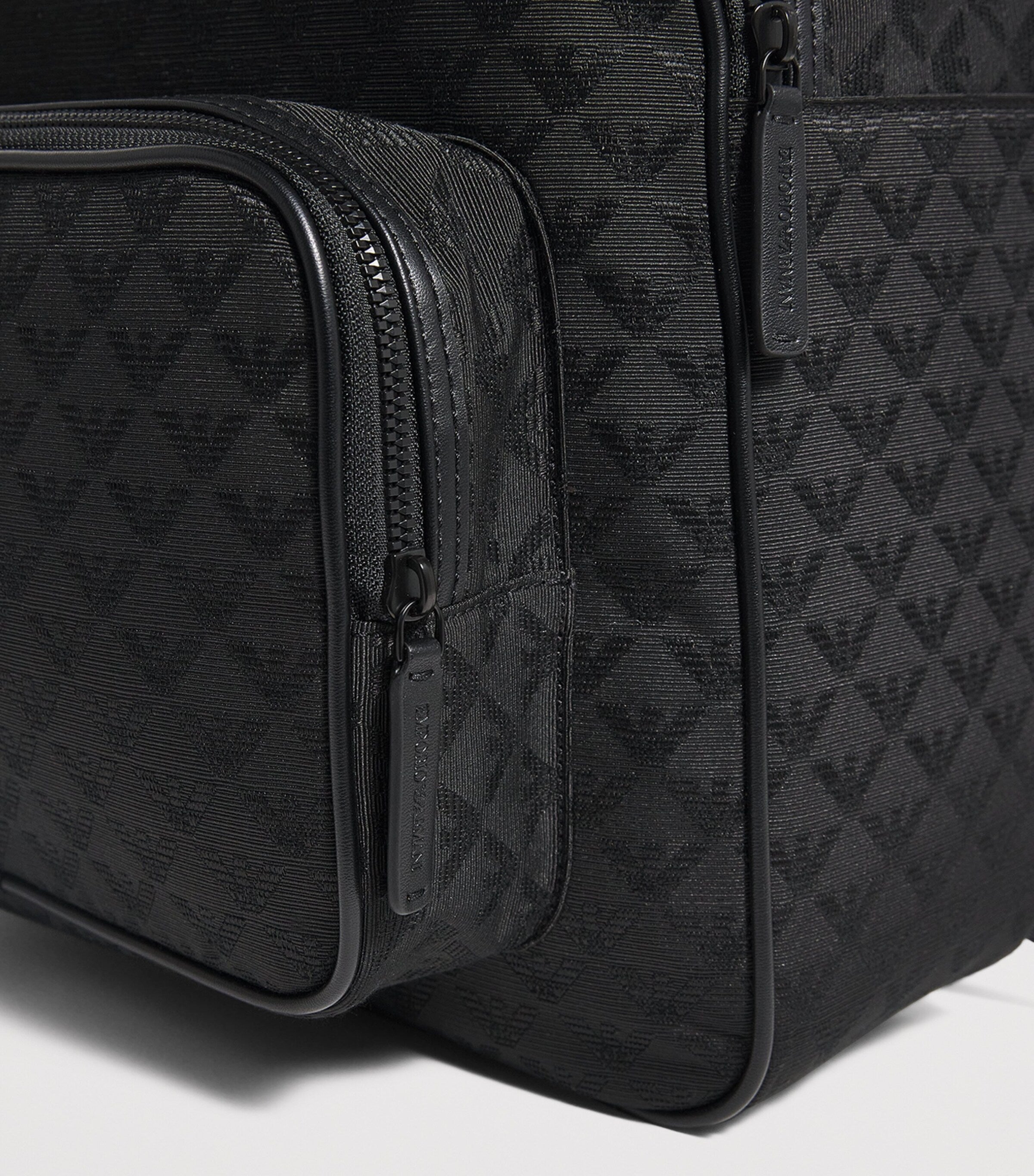 This Emporio Armani backpack showcases an all-over jacquard logo motif, paired with a front zipped pocket to keep essentials close at hand. With clean lines and meticulous craftsmanship, this accessory offers a perfect balance of bold branding and practical storage for busy lifestyles.