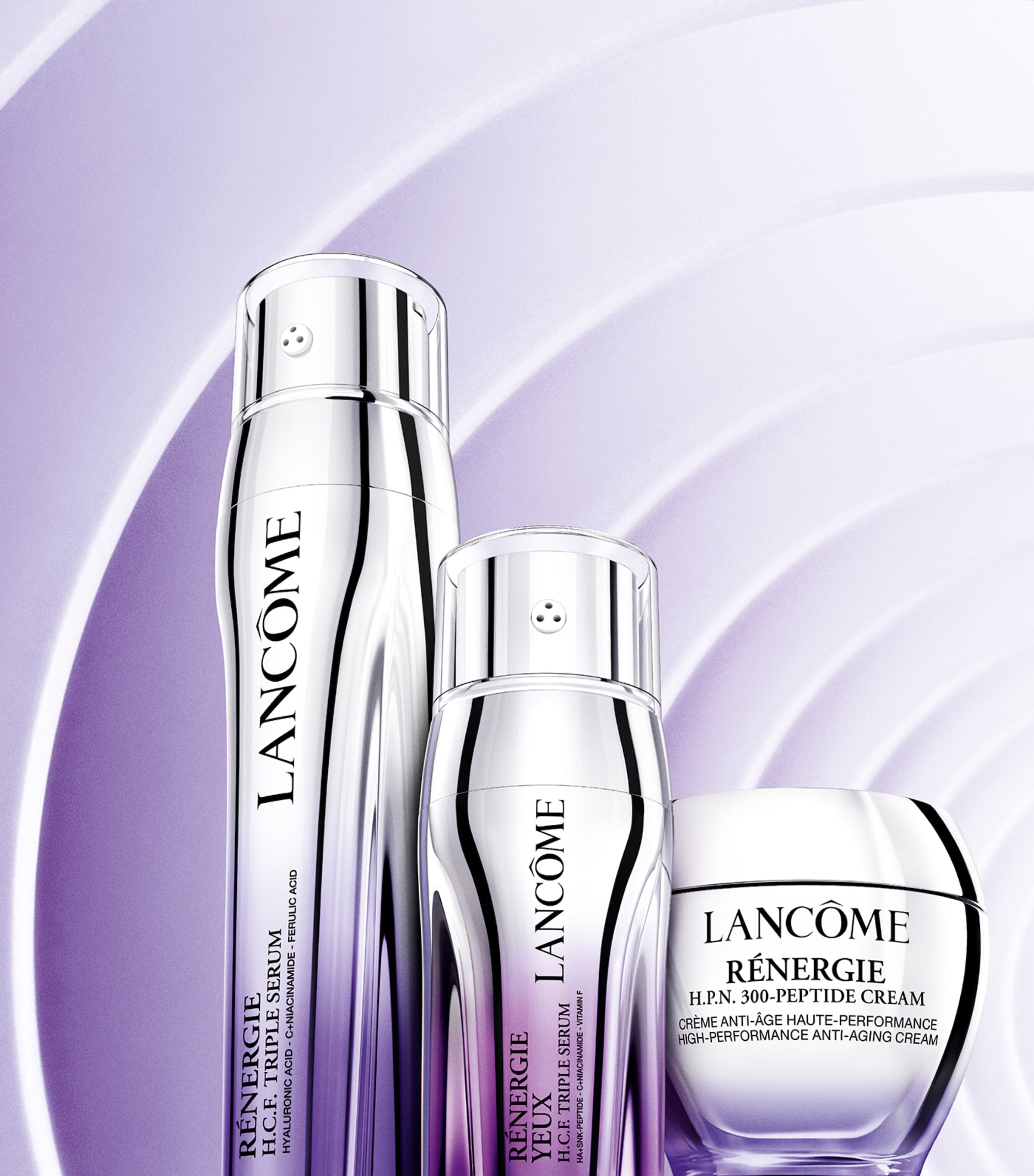 The Rénergie H.C.F Triple Serum from Lancôme is expertly formulated with an advanced blend of three active ingredients designed to deliver visible anti-ageing effects. Combining hyaluronic acid, vitamin C+ niacinamide and ferulic acid, it works to minimise the look of wrinkles and dark spots for a firm, rejuvenated complexion.
