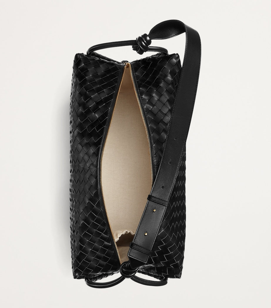 Bottega Veneta's long-standing leatherworking heritage is showcased to perfection in the form of the large Loop holdall. While the capacious accessory is clearly defined by its Intrecciato weave, let us instead draw your attention to its other, perhaps less noticeable features, namely its tied tubular handles and stand out gold-tone hardware.