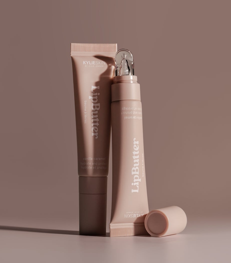 The Kylie Skin Lip Butter from Kylie Cosmetics takes care of the delicate skin on your lips with an ultra-hydrating**, barrier-protecting formula. It contains a Moisture Barrier Complex, shea butter and jojoba seed oil to instantly quench dry, chapped lips with its buttery texture that melts into the skin* while helping improve the appearance of lip lines. In a consumer test on 55 women between 18 and 35 years old: *100% say it has a rich, buttery, and cushiony texture that melts into lips **100% say it replenishes and locks in moisture so lips remain hydrated all day