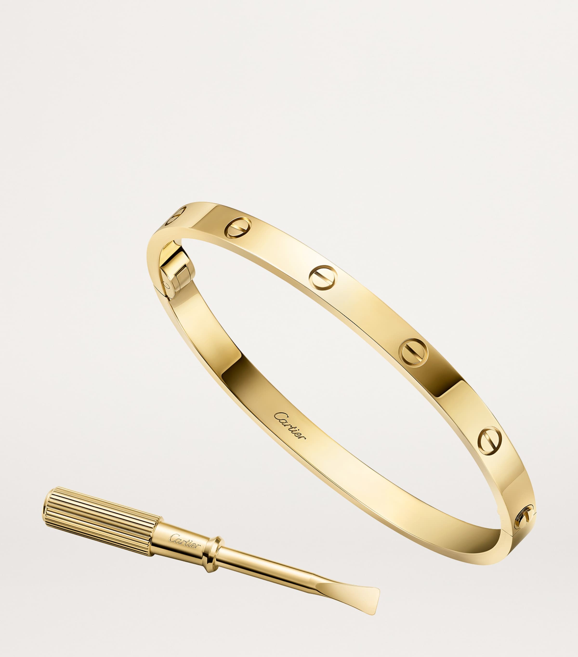 When one thinks of Cartier, the LOVE collection likely springs to mind. It was conceptualised by legendary jewellery designer Aldo Cipullo in 1969 and has since become an icon. It’s prized for its symbolism, evoking an eternal bond with screw details that suggest the wearer is locked into love. These romantic notions are here translated into an 18-karat gold bracelet.