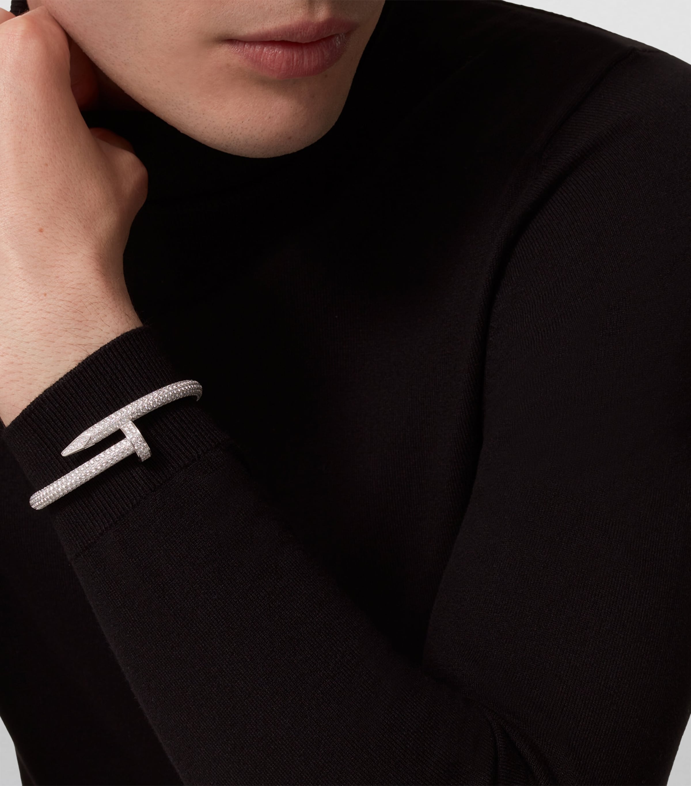Cartier’s Juste un Clou collection dates back to the carefree 1970s, but its avant-garde approach is distinctly modern. It’s defined by a repurposing of the nail within the context of fine jewellery – a move that offers a sublime take on the ordinary with an outrageous edge. This bracelet is crafted from 18-karat white gold and set with 879 diamonds, taking it far away from its humble inspiration.