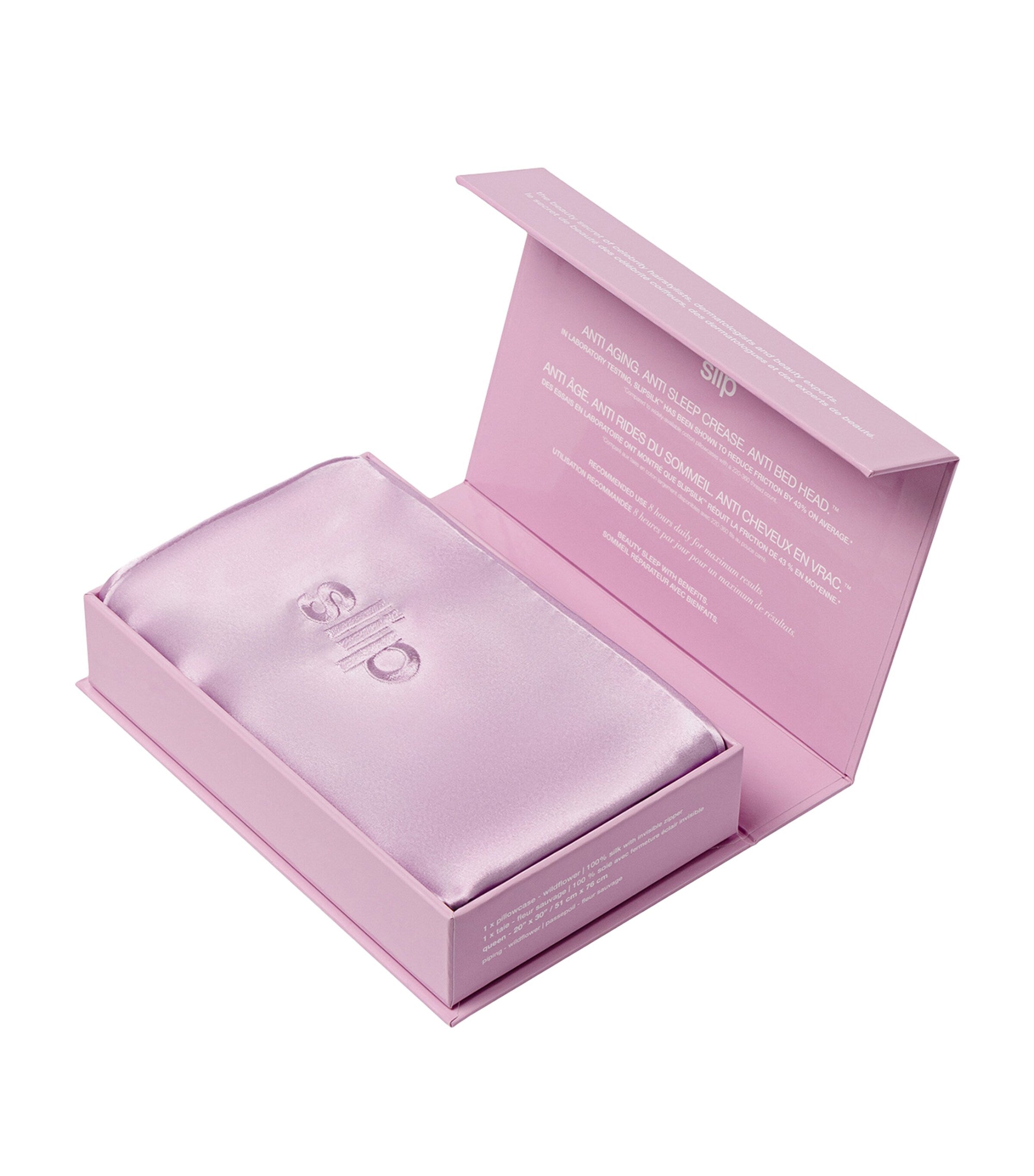 Refined over the course of a decade to ensure exacting results, the special mulberry silk used in this Queen-sized pillowcase is called slipsilk, a dermatologically approved, hypoallergenic material designed by Slip to provide the ultimate combination of shine, thickness, softness and durability for your hair. It’s beloved by celebrity beauty experts and achieves results in as little as four nights, with hair visibly less frizzy and suffering less damage from tossing and turning in bed.
