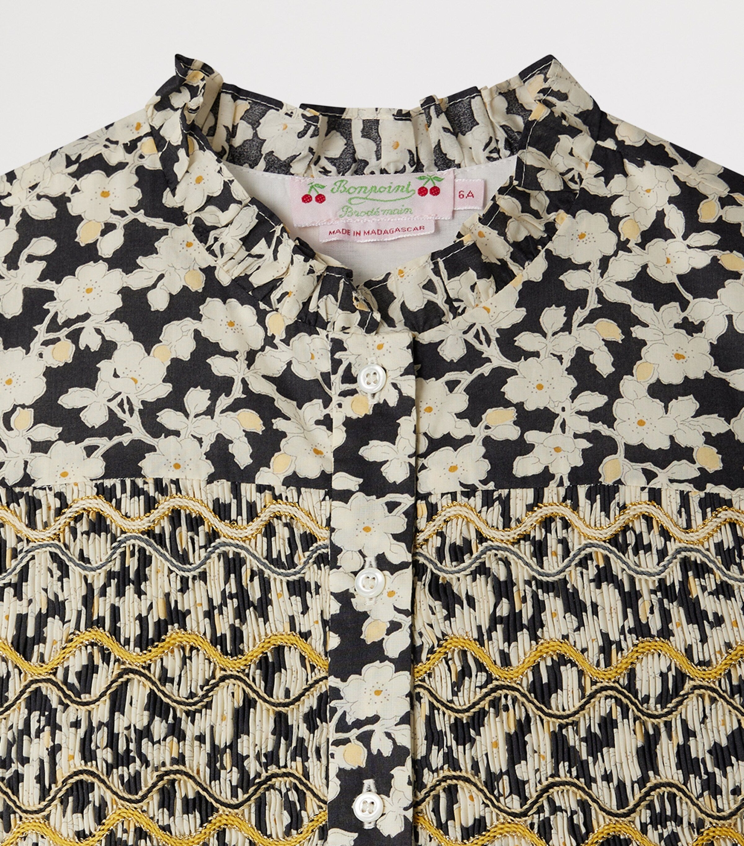 Since 1975, Bonpoint has remained faithful to its core values of precision, quality and beauty – all three of which are expressed beautifully in this dress. Crafted from organic Liberty cotton, it features a bountiful floral print which is completed by a set of mother-of-pearl buttons on the front. Embroidered smocking is worked into the dress as a sign of the House’s artisanal expertise.