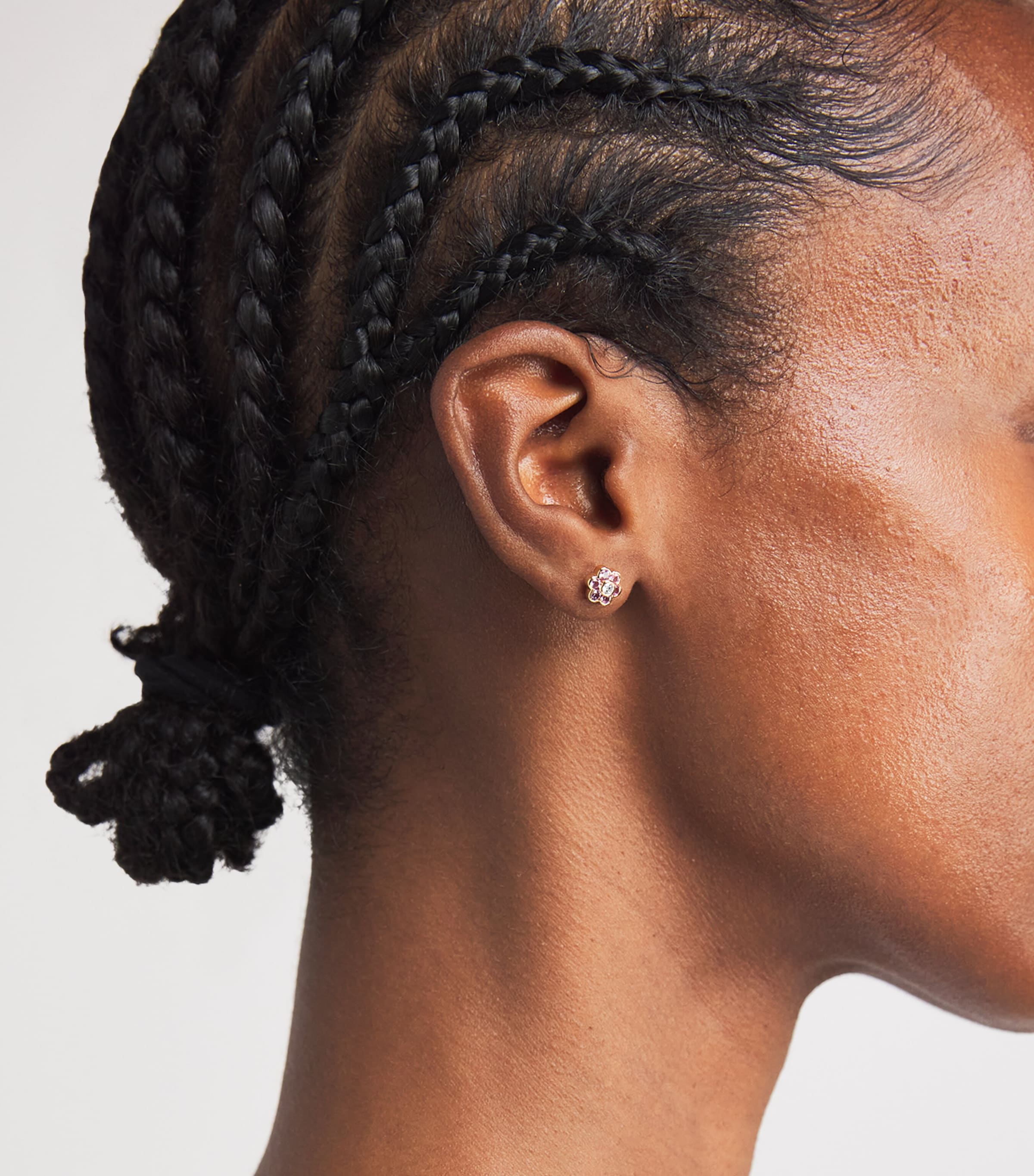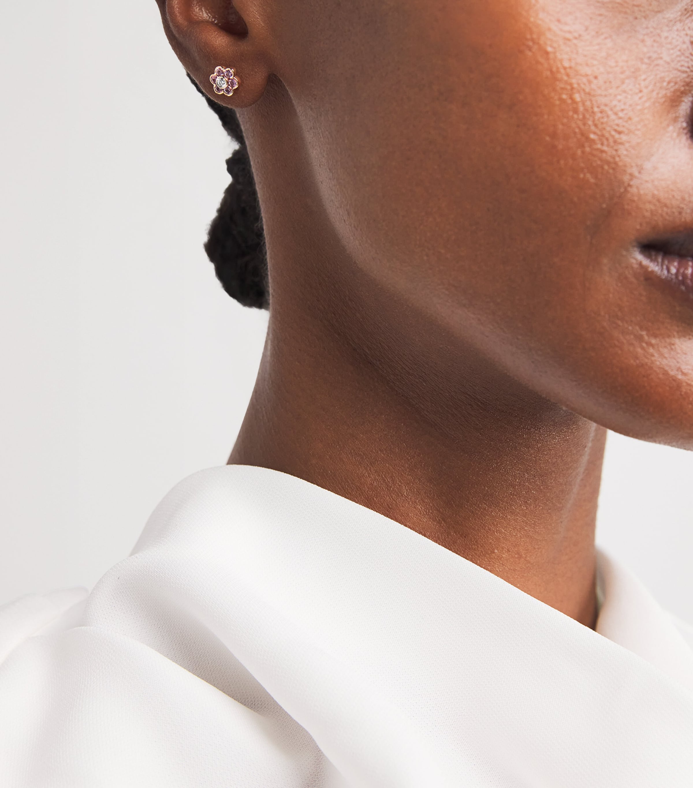 The raw beauty of flowers inspires Anita Ko's Flora collection. Sculpted to resemble a lawn daisy, this pair of earrings sees a scintillating round diamond surrounded by pink sapphire petals, all set within polished 18-karat rose gold.