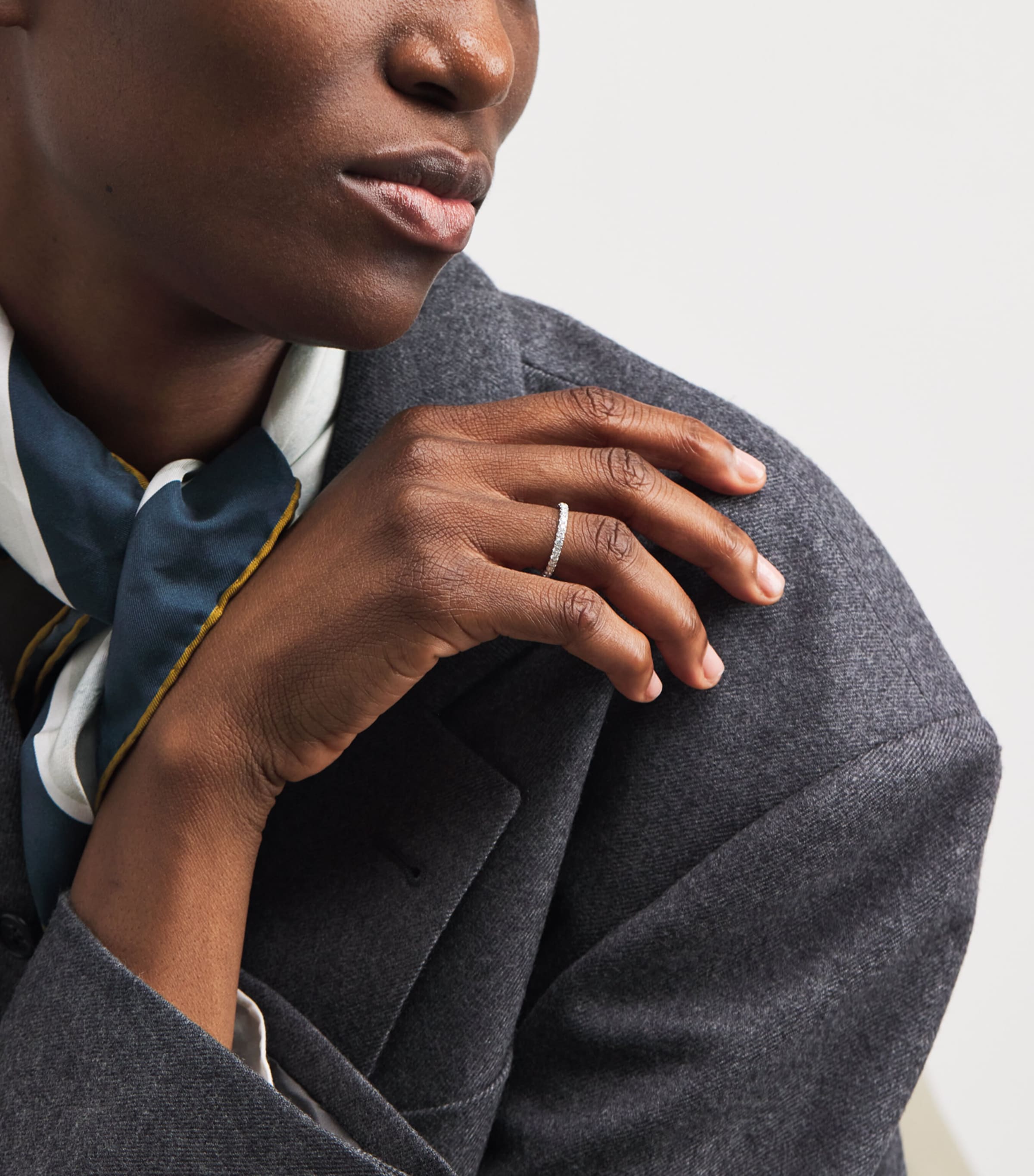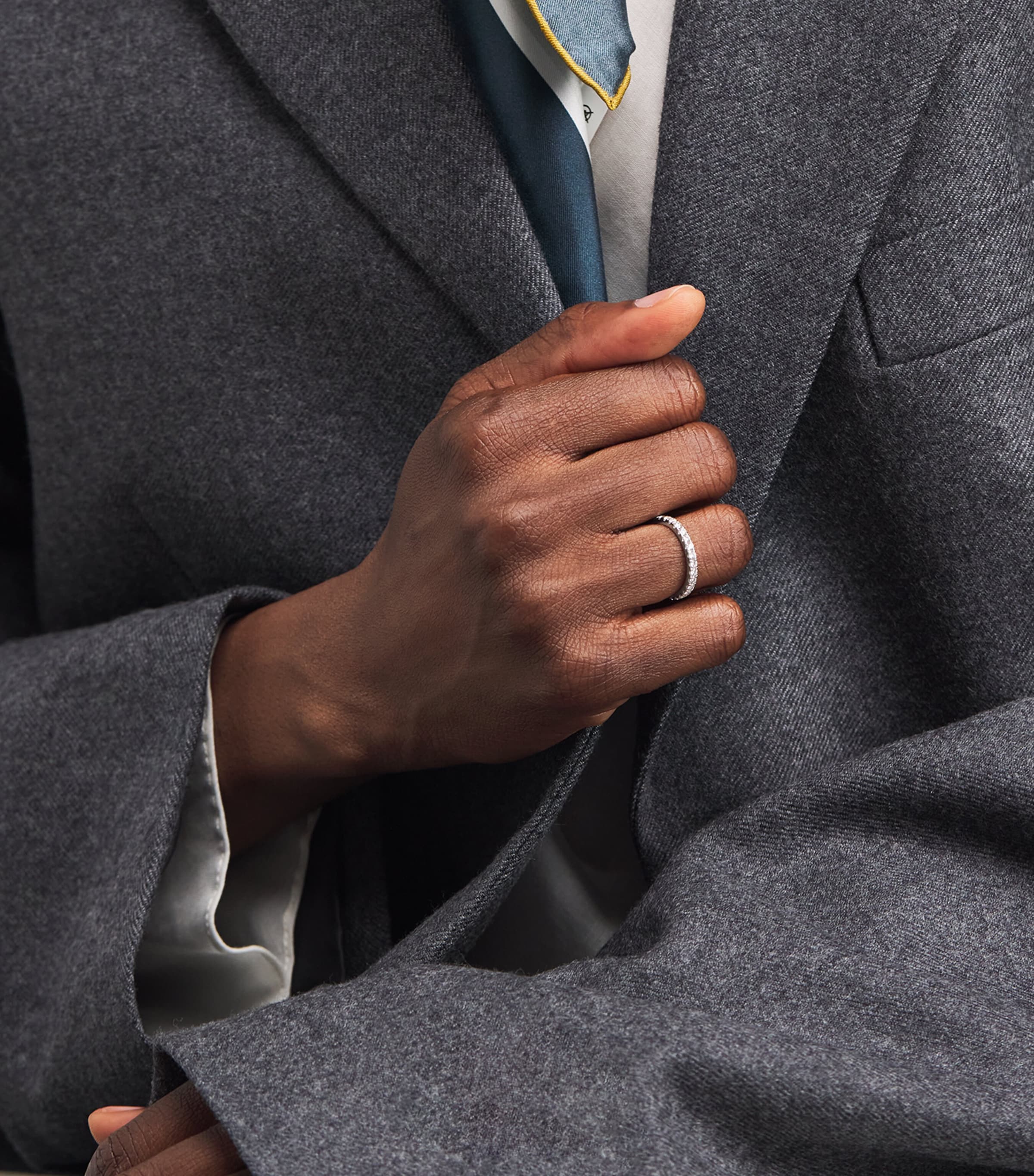Hailing from Harrods' first fine jewellery collection, this elegant eternity ring features round-cut diamonds set along three-quarters of the band for a refined, radiant finish. Crafted in 18-karat white gold, it offers timeless sparkle with a contemporary twist.