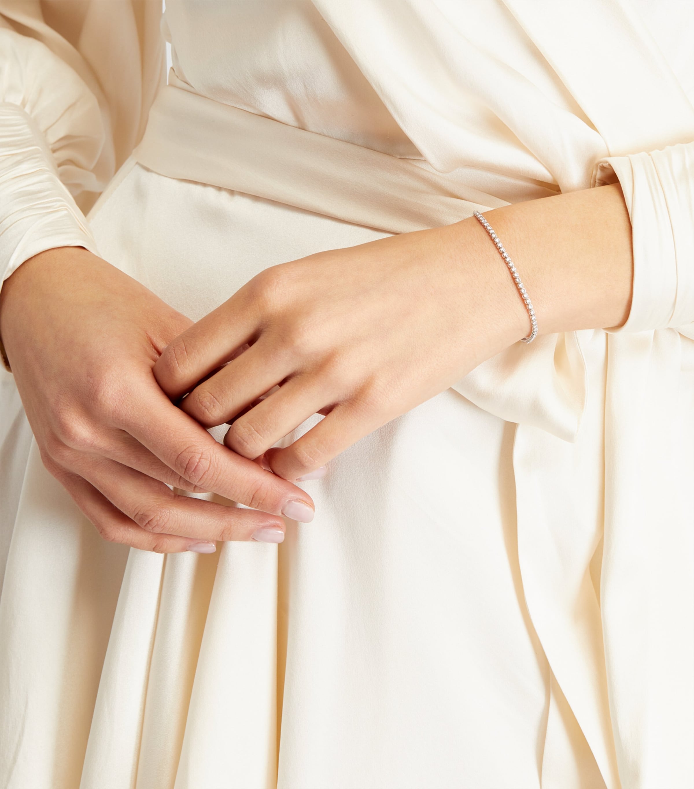 For every diamond-laden chain and beefed-up gemstone that exits SHAY's atelier, there's a dialed-down piece for good measure. In this bracelet, an unending row of square-shaped diamonds seemingly float upon the wrist, while a subtle casing of white gold keeps everything held in place. Whether you wear it alone or stack it up with other favourites, it'll provide just as much impact.
