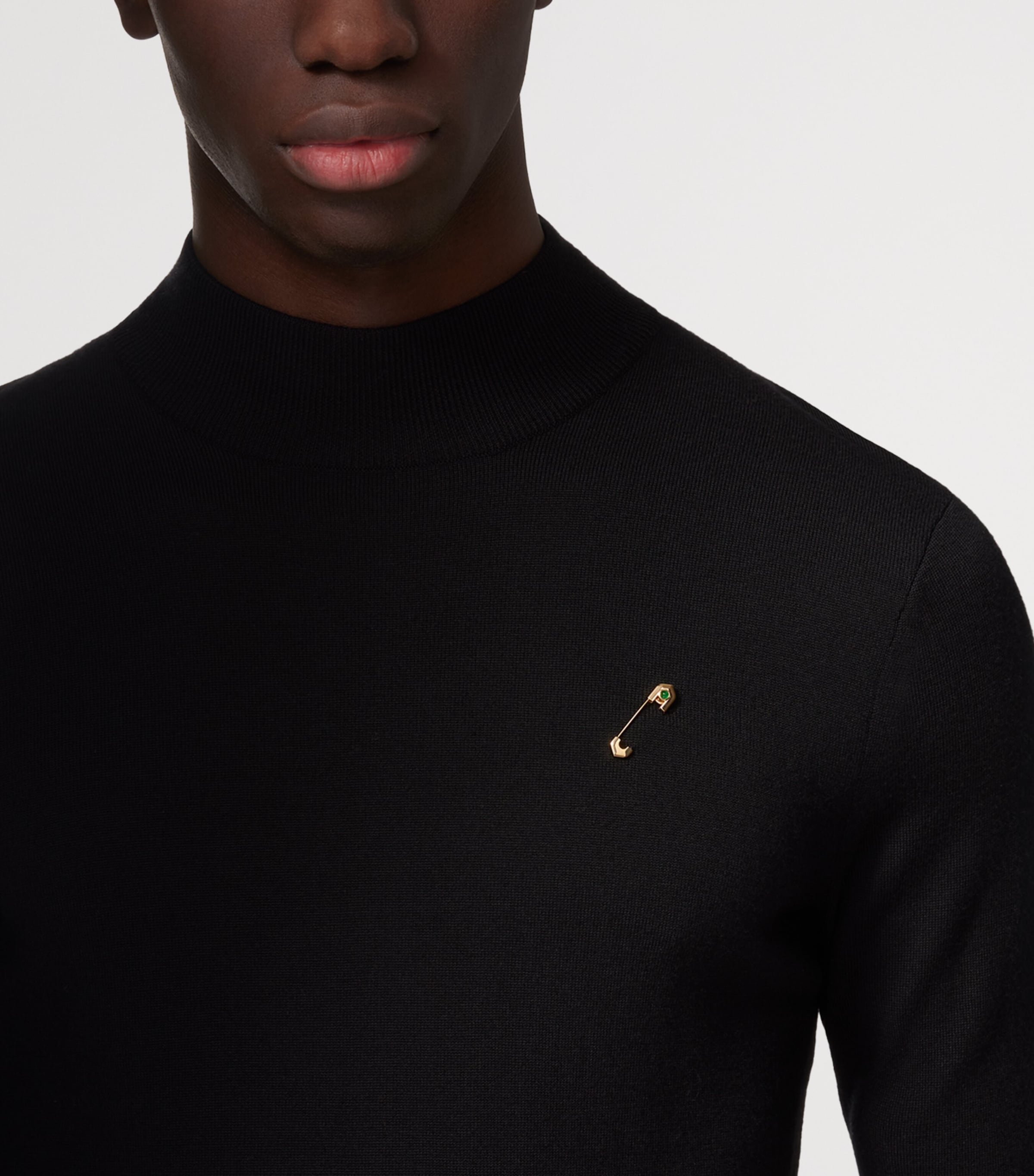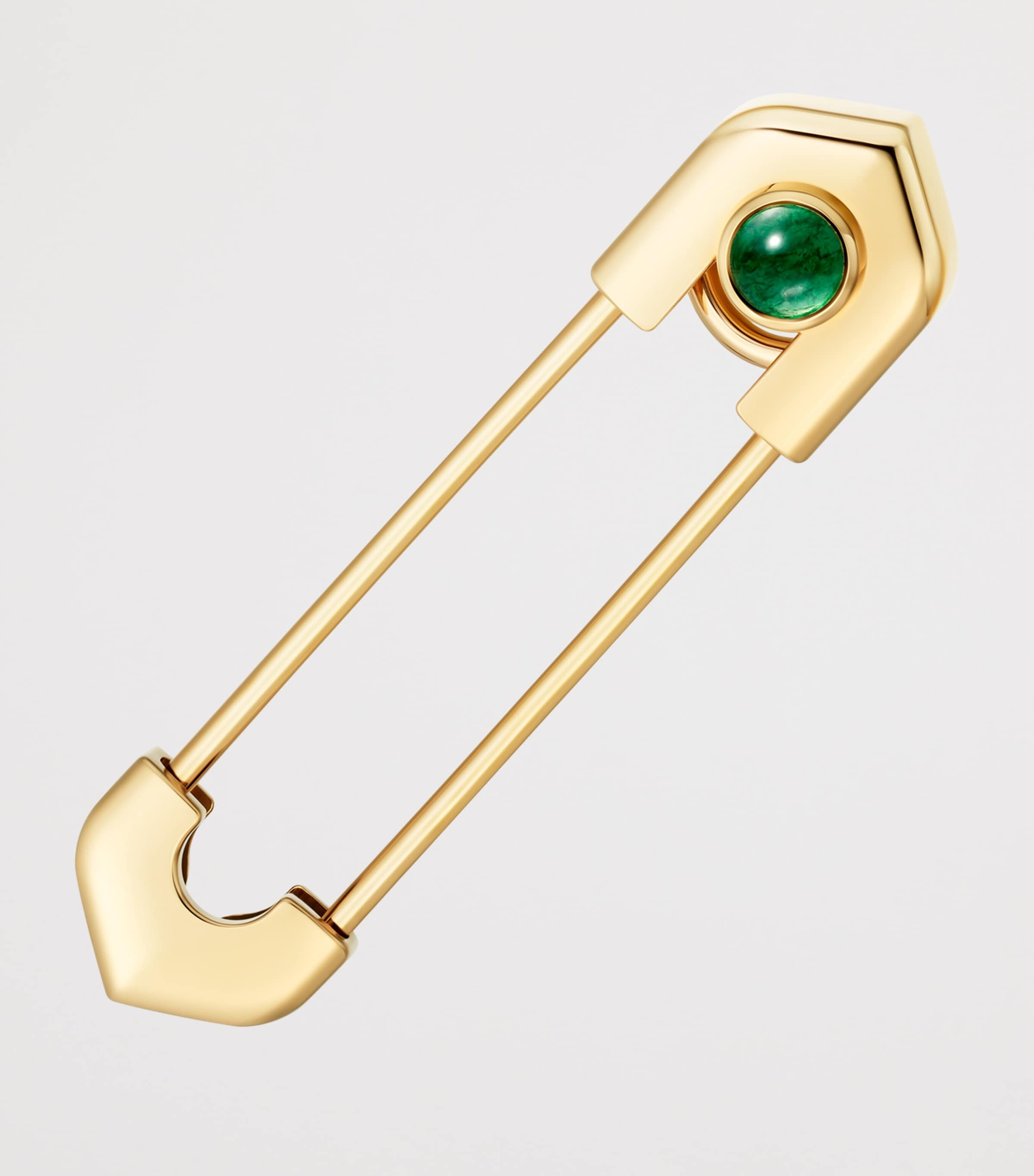 An ode to Cartier’s legacy, the C de Cartier collection incorporates subtle nods to iconic House codes through its refined designs. This 18-karat yellow gold tie pin, adorned with an aventurine, is shaped like a safety pin, with each end resembling part of the Maison’s logo as a subtle appreciation of its eye for excellence.