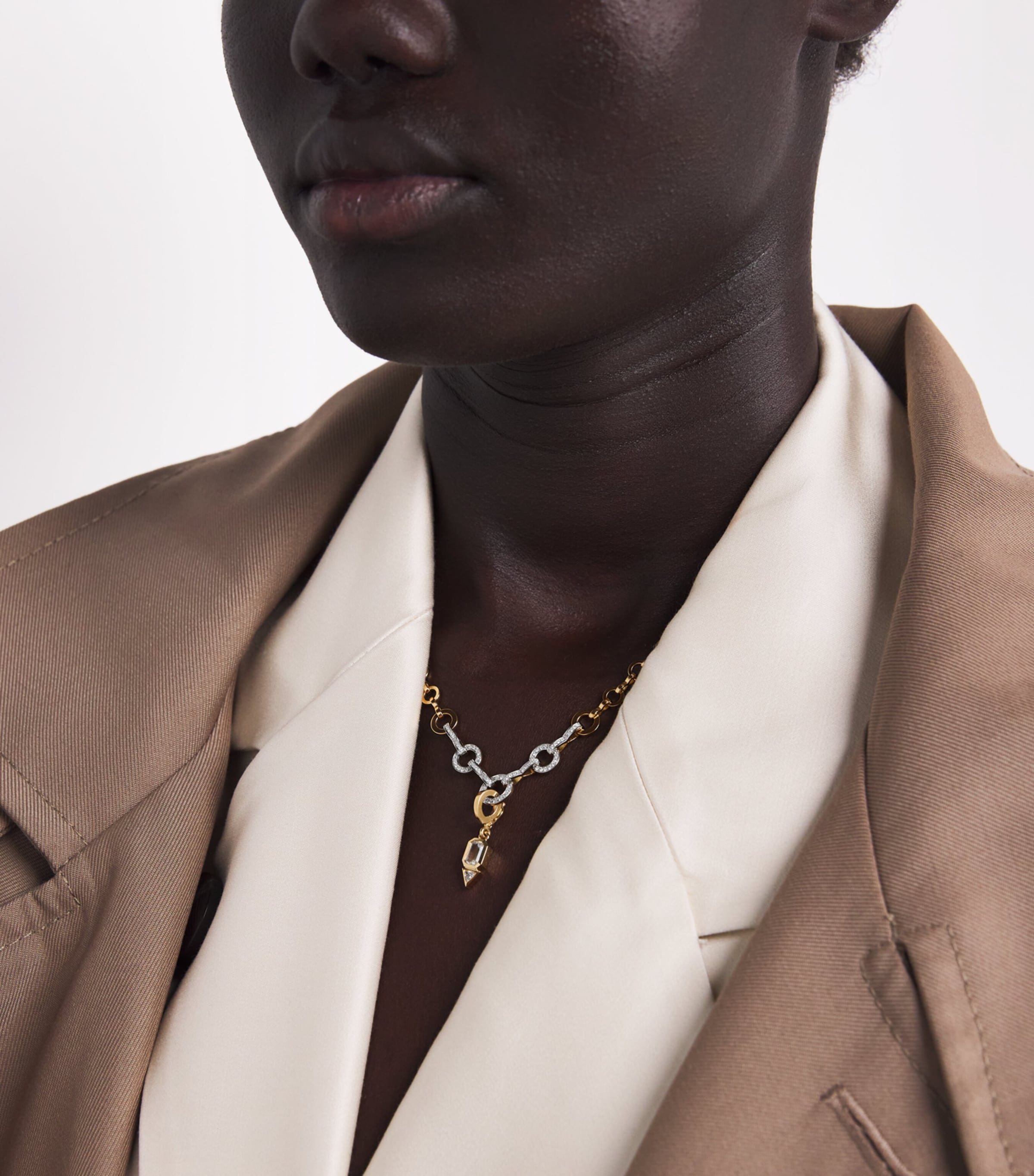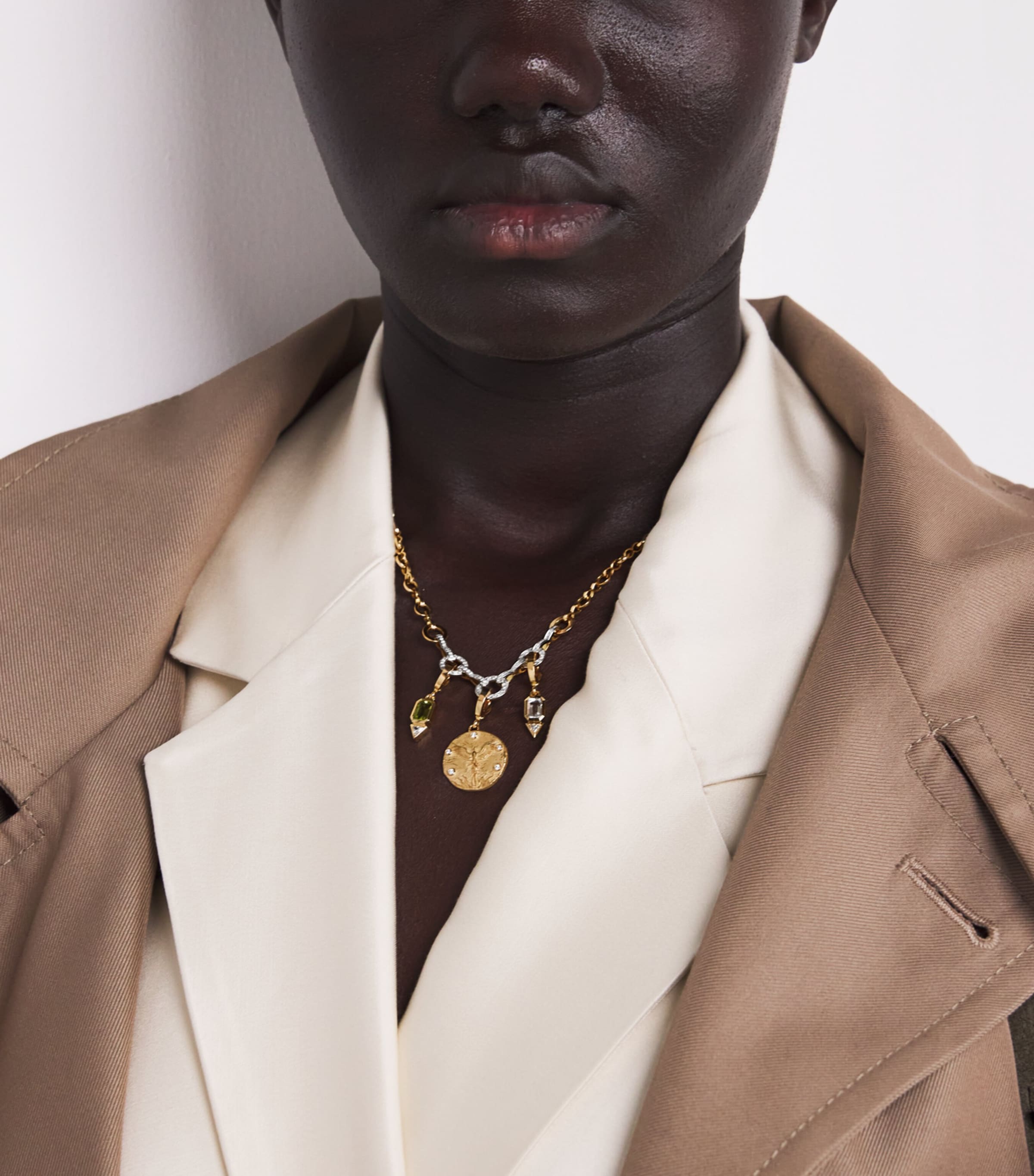 The founder of Azlee, Baylee Ann Zwart, is an expert in diamond cuts, so each new collection comes with the thrill of what will be included: will it be a clean row of baguettes or a crowning princess? With this 18-karat yellow gold June charm, a singular trillion is cast as the supporting role alongside a larger moonstone – it’s safe to say that the results speak for themselves.